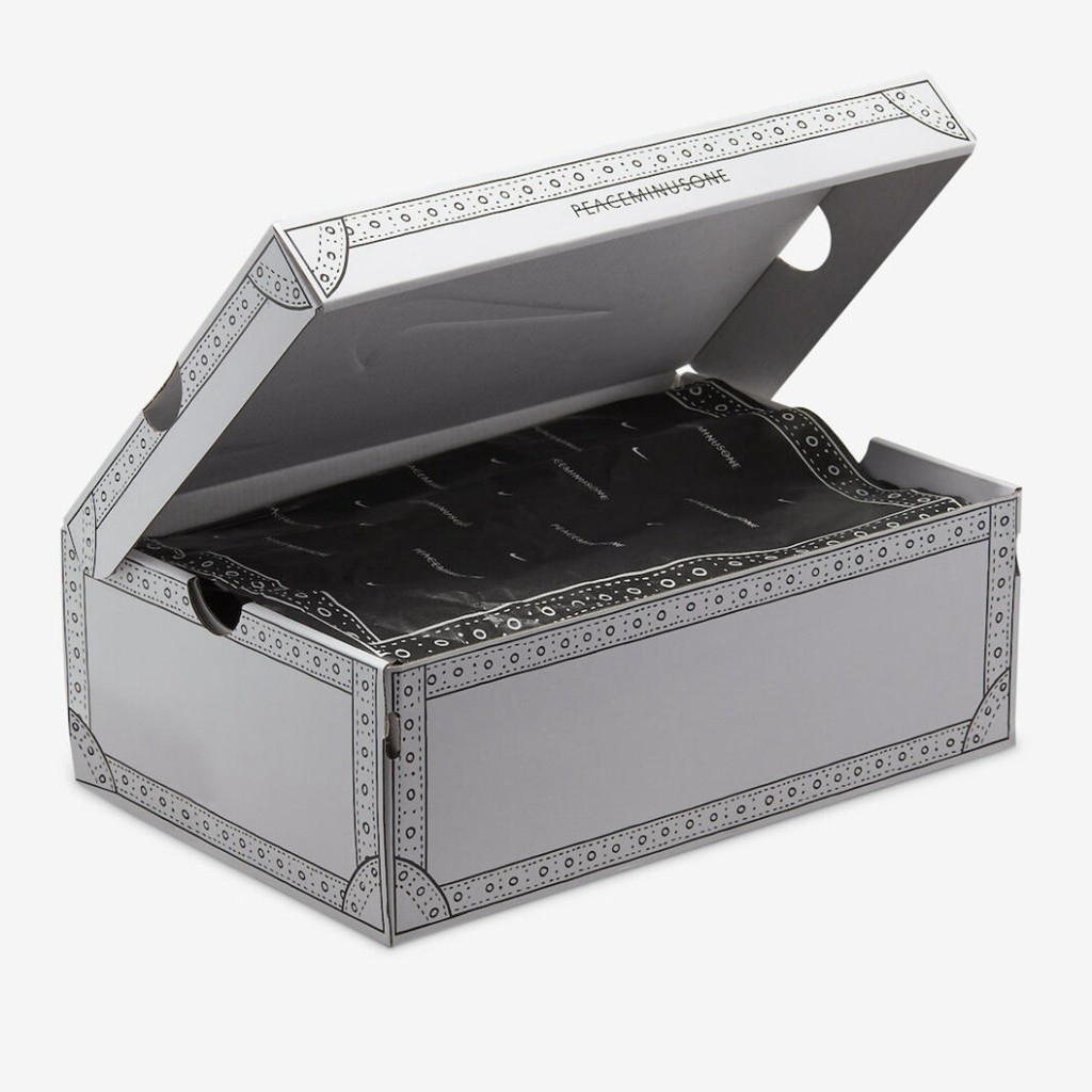 鞋带头依旧点缀有 PEACEMINUSONE 的字样,细节呈现上非常到位。