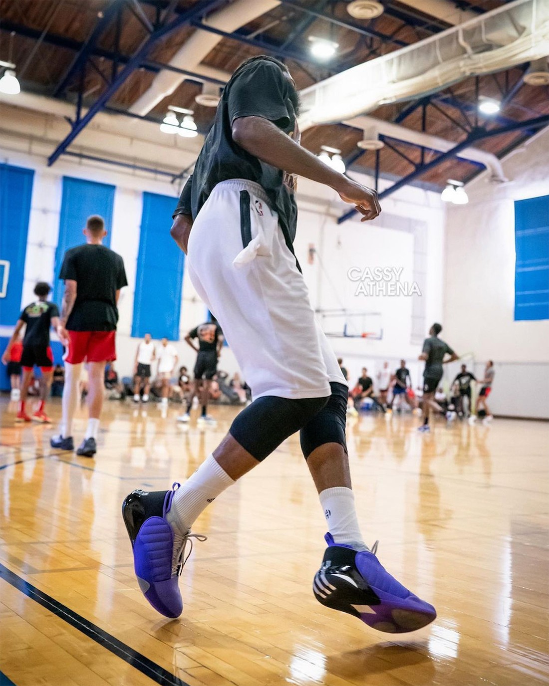 今早,哈登本人亲自上脚一款全新战靴,不出意外就是哈登最新一代签名战靴:adidas Harden Vol. 7。