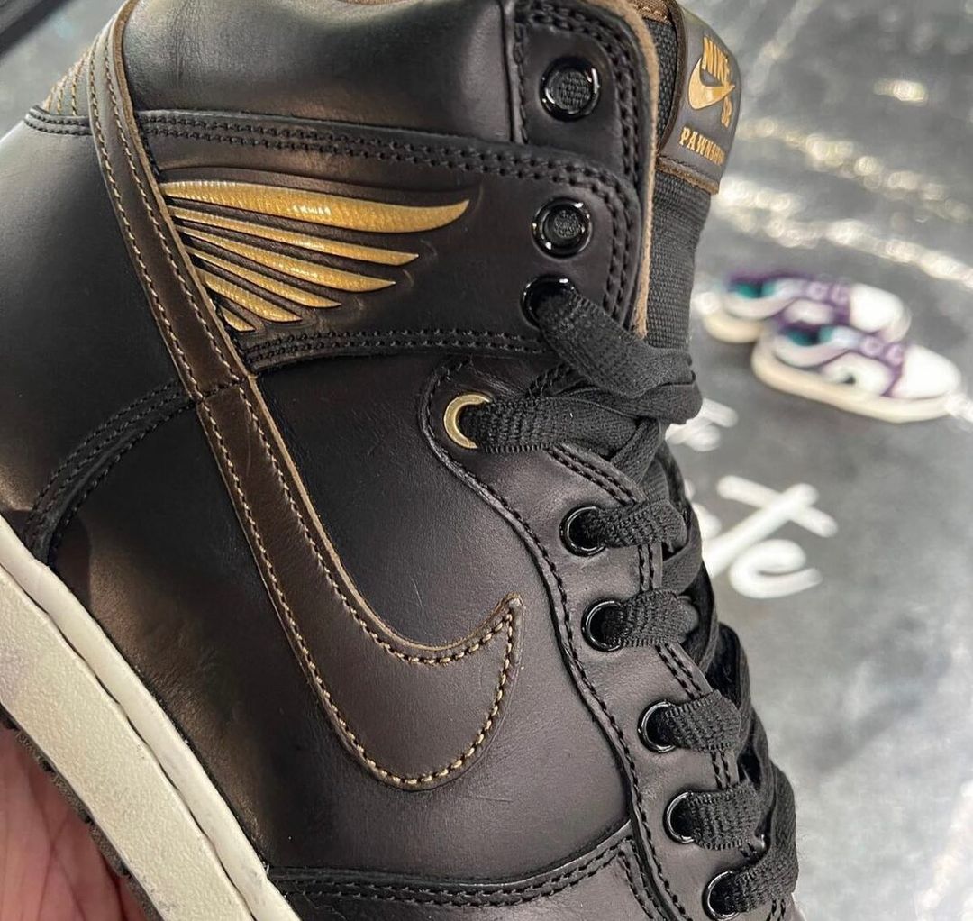 近日,一双 Pawnshop x Nike SB Dunk High 释出实物,乍一看还以为和 HONDA 联名了。