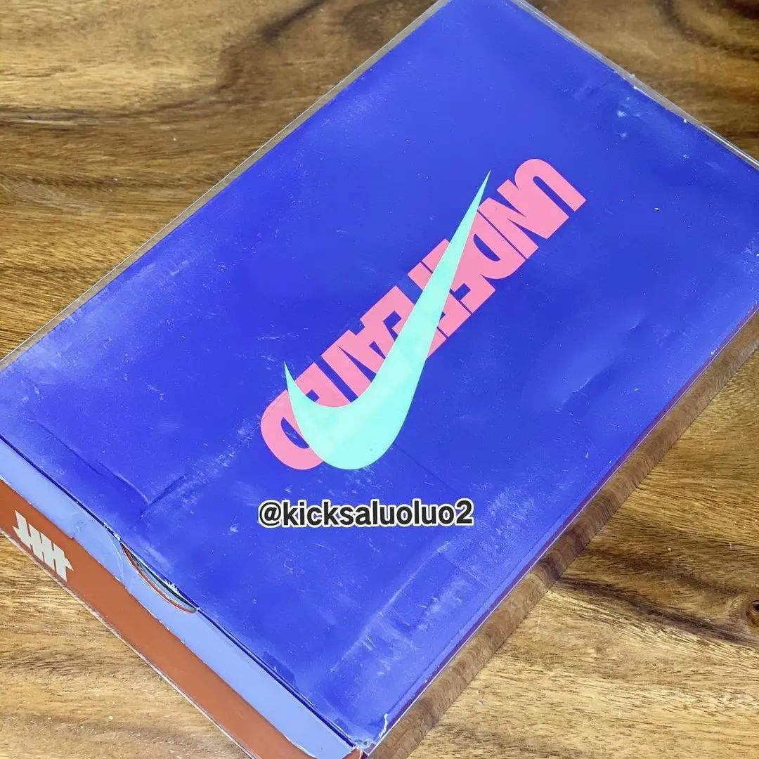 鞋侧 Swoosh 使用橙色塑料材质呈现,与鞋款配色相得益彰,鞋头点缀金属材质的 UNDFTD 鞋带扣,让人眼前一亮。