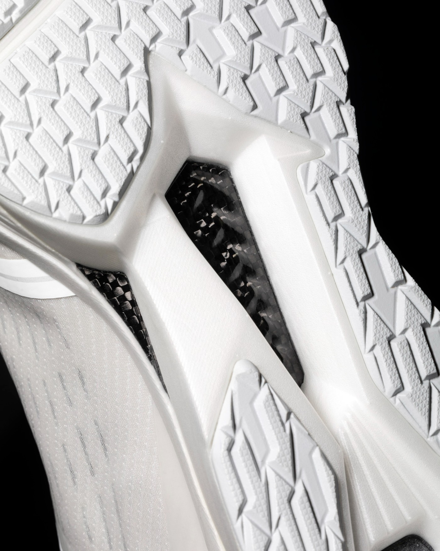 足弓处还有碳纤维抗扭片,提供稳定性的同时,让前后掌的发力衔接更加顺畅。
