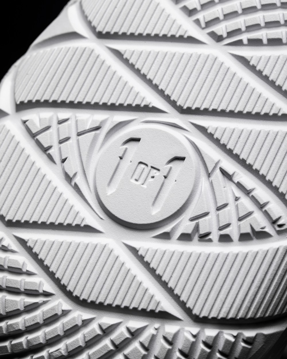 全鞋唯一用到了皮革材质的地方就是亮银色 1 of 1 字样的鞋舌标签,兼顾了透气与质感。