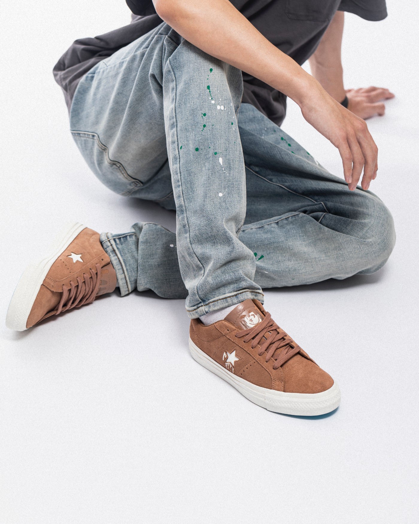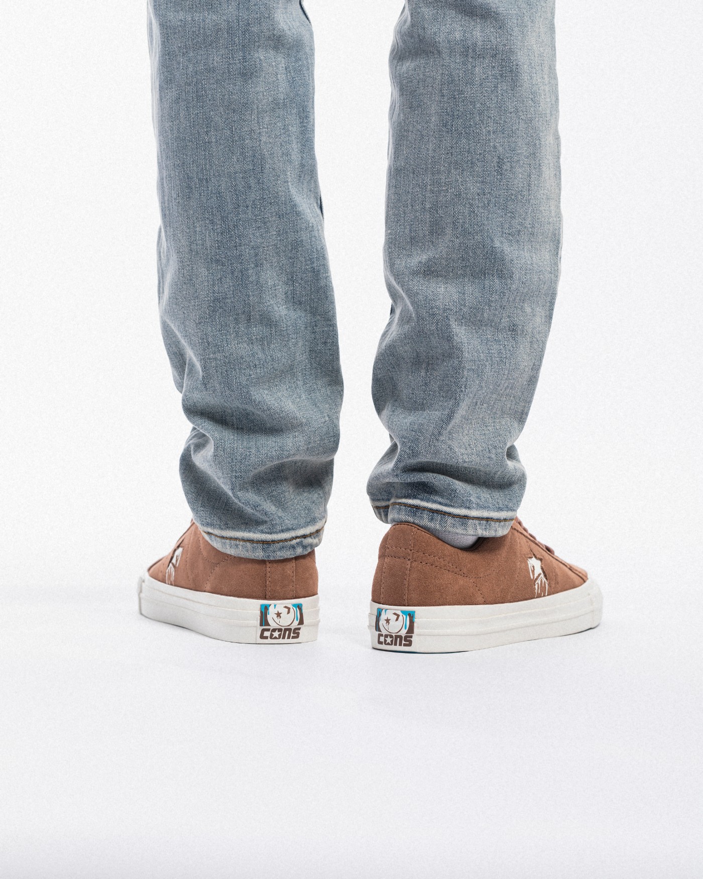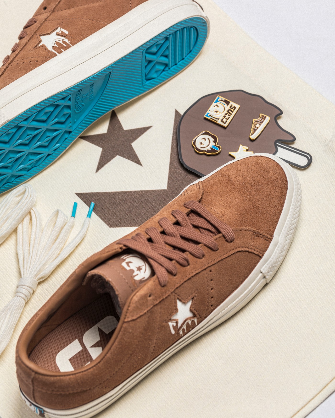两脚鞋舌分别印有笑脸图案和 Converse Logo 并淋上「巧克力酱」,彰显鞋款身份。