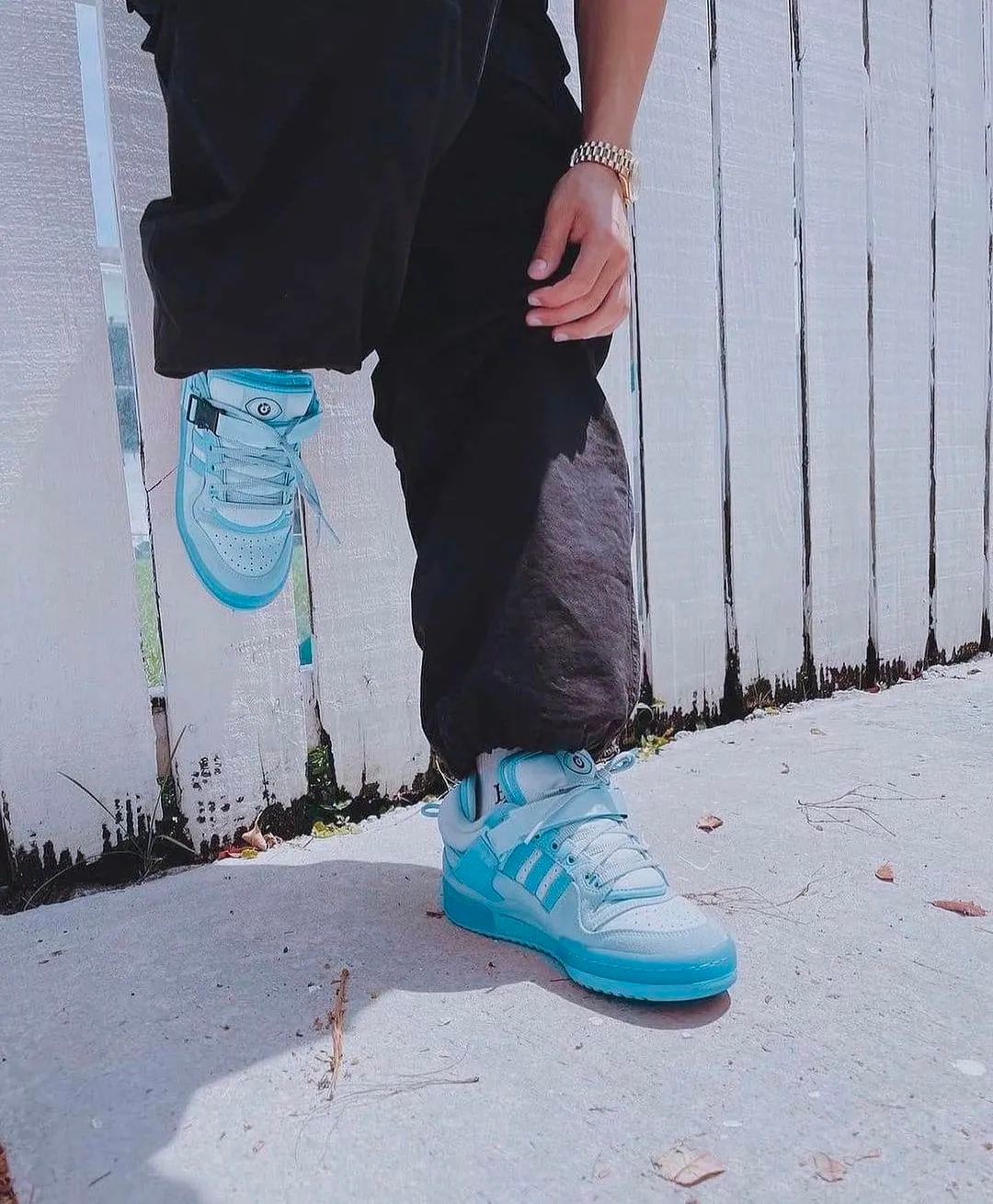 近期双方最新联名鞋款 Bad Bunny × adidas Originals Forum Low “Blue Tint” 不仅释出官方预告,Bad Bunny 本人也亲自上脚,暗示发售日期临近。