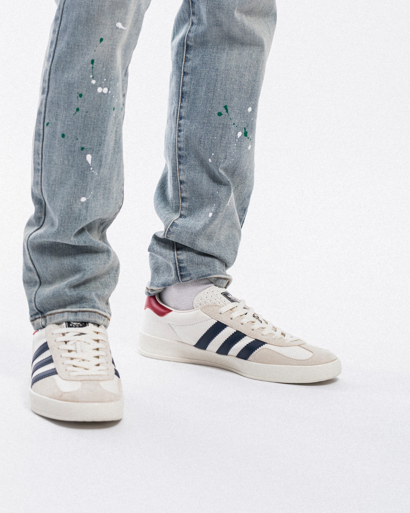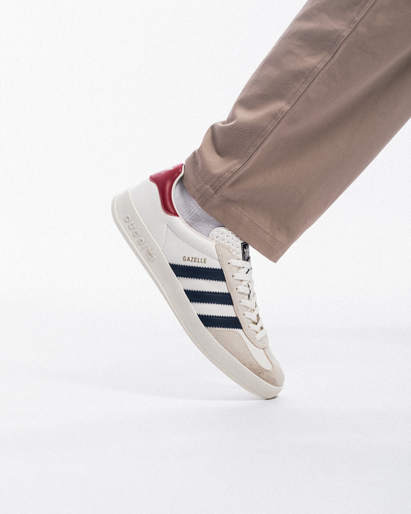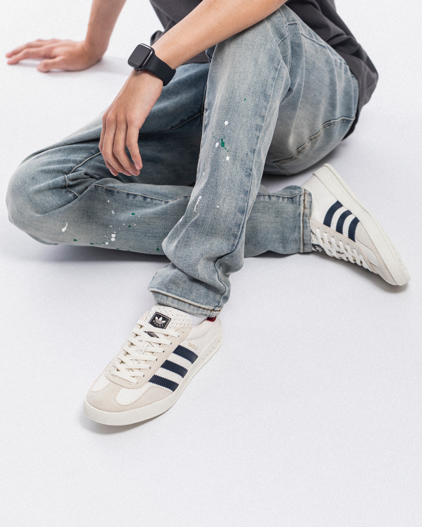 此次联名中一双 Gazelle 因为与其他「满印」Logo 的配色明显不同,显得格外低调,成功引起了小编的注意。