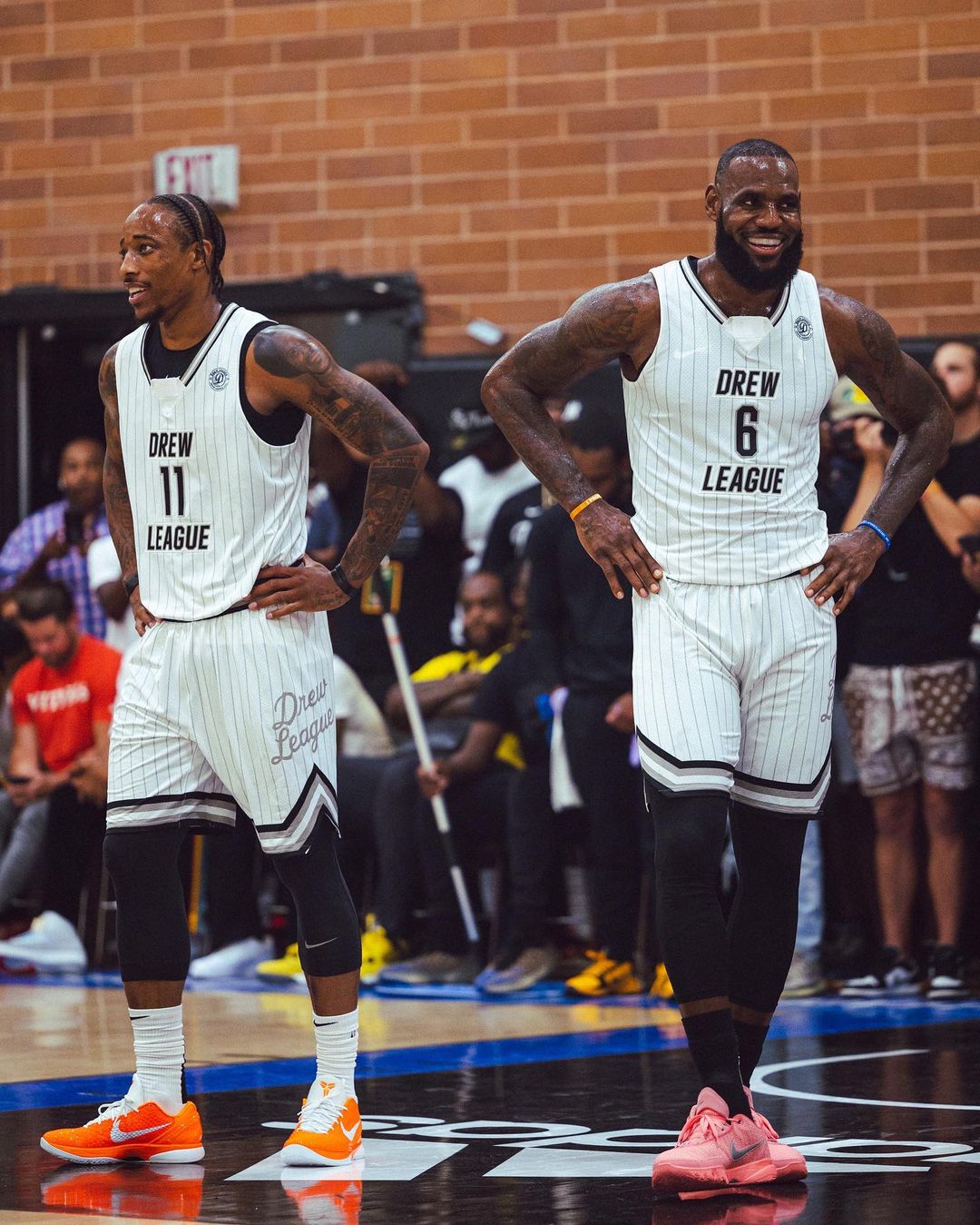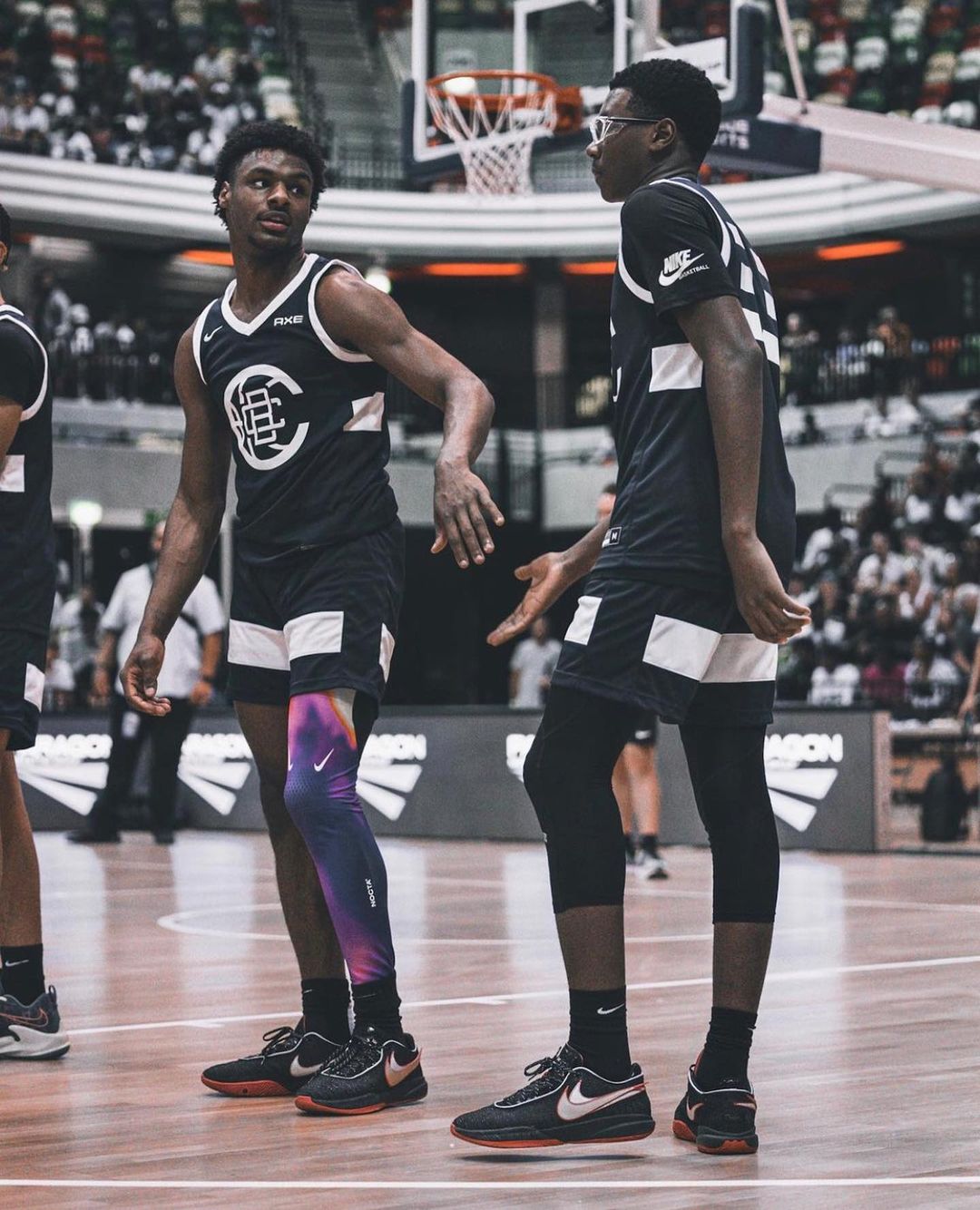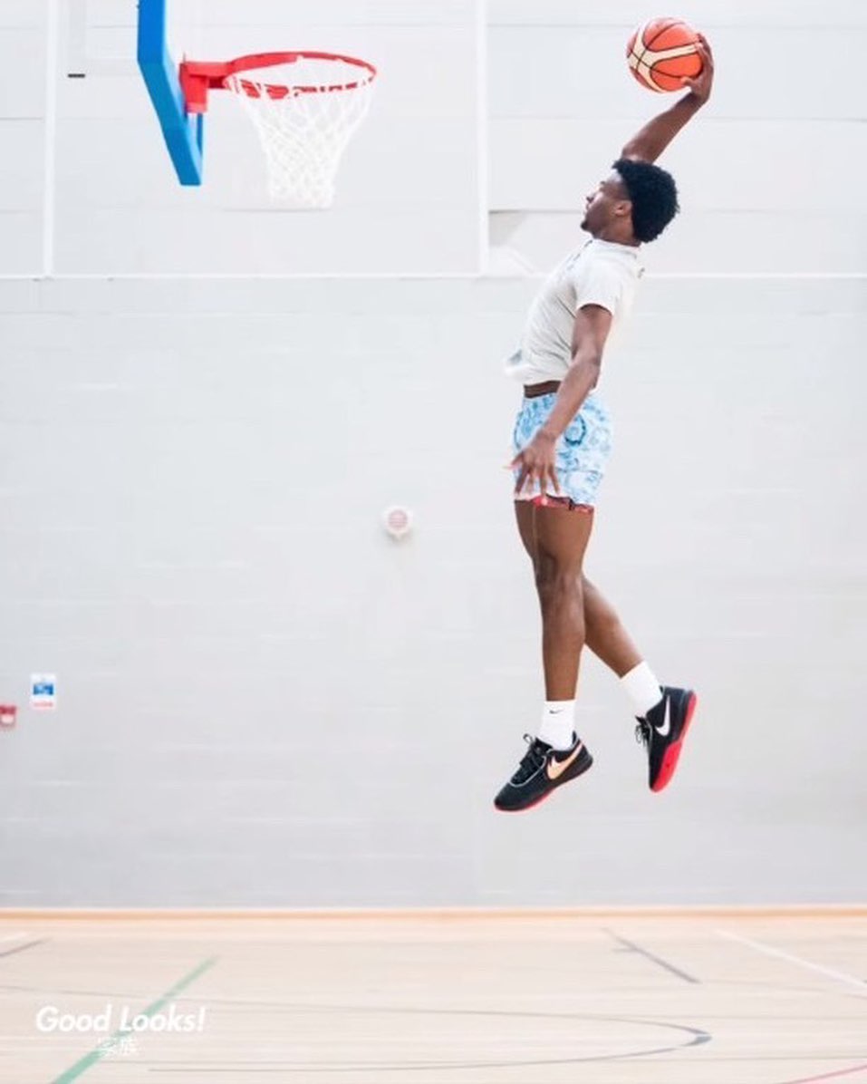 两人目前均在塞拉峡谷高中,可以看出两人上脚的为经典黑红配色,双叠钩 Swoosh 设计更加明显。
