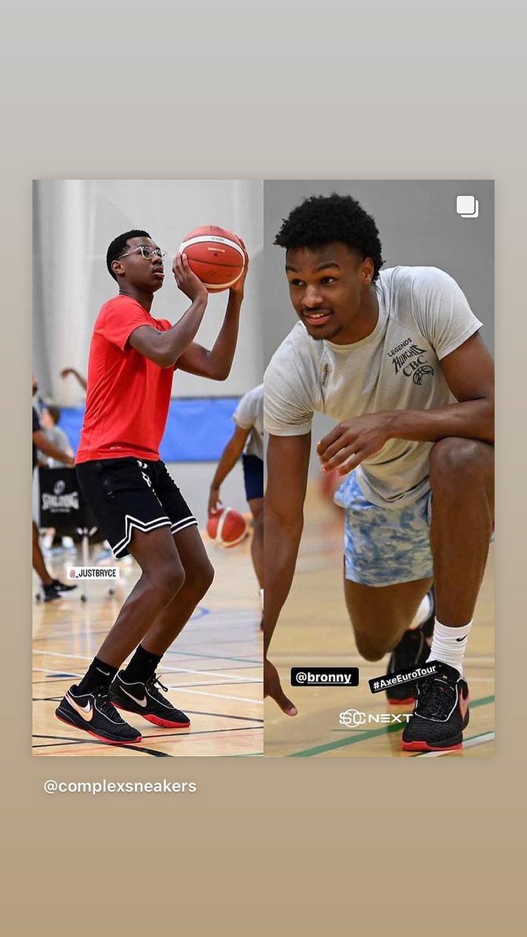 詹皇此前上脚的配色为亮眼的骚粉配色,而就在昨天詹皇的两位皇子布朗尼以及布赖斯·詹姆斯同样抢先一步上脚了 Nike LeBron 20。