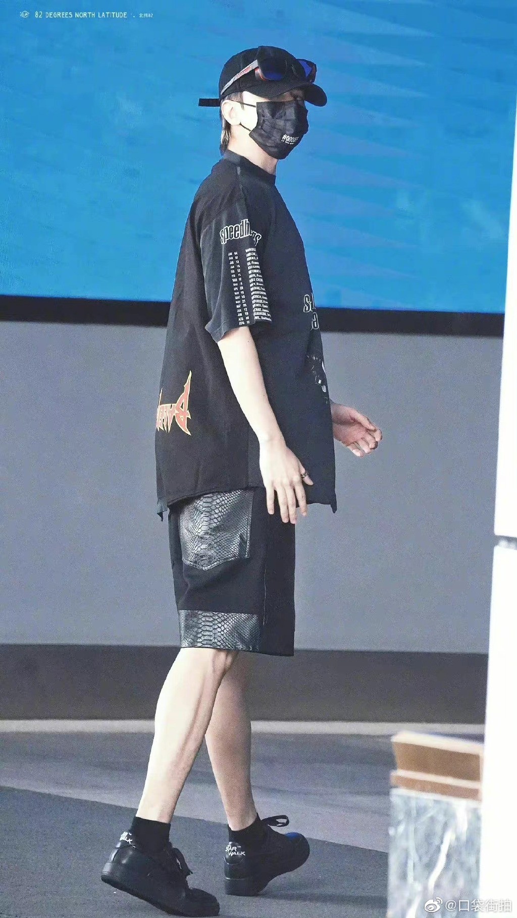 最近蔡徐坤上脚了一双纯黑色 Starwalk 鞋款。