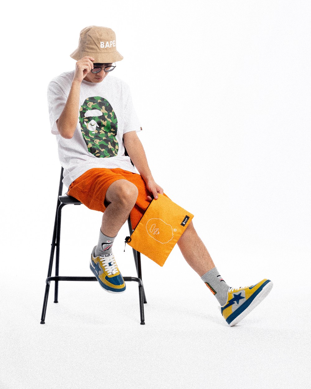 整套单品在色系上更跳脱,因此小编选择了同色调,也是刚上架的全新 BAPE STA™,将视觉平衡拿捏的恰到好处。