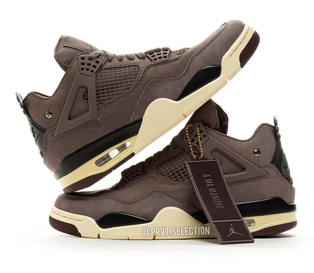 除了上面刚刚提到的 Air Jordan 12 联名外, A Ma Maniére x Air Jordan 4 也将于 11 月同期登场,目前实物及上脚效果已提前泄露。