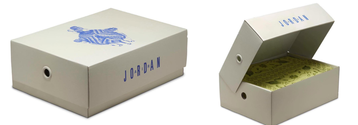 鞋盒也采用特殊规格,盒盖印有品牌 Logo,内层衬纸也采用了独特印花设计。