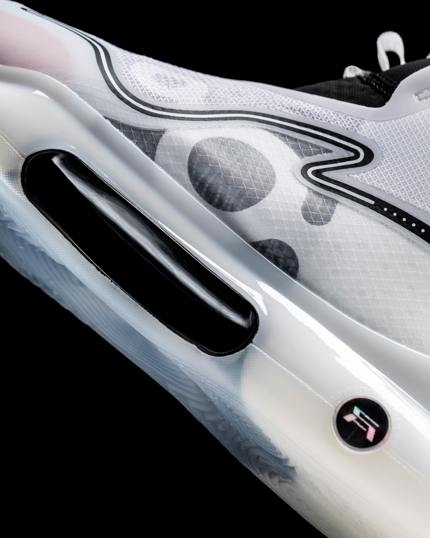 鞋底也采用了全新结构,在中足部分搭载全新虫洞结构 TPU 框架。
