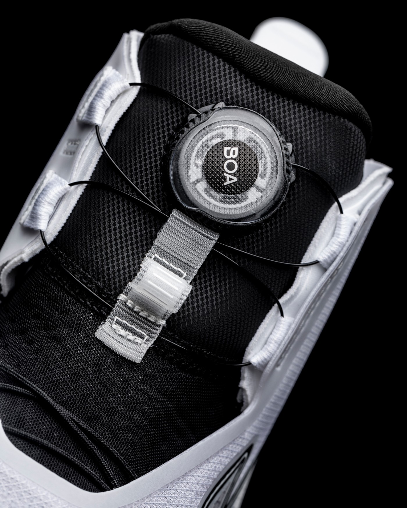鞋面完全采用快速系带设计,鞋帮部分搭载 BOA 旋钮,稳固又方便。