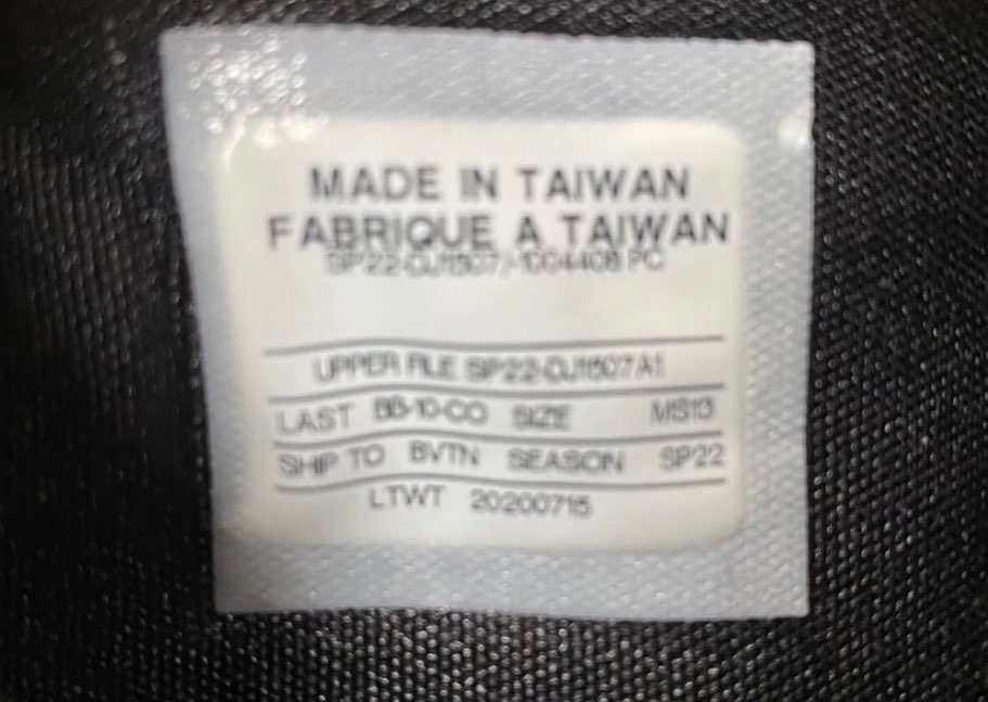 从鞋标来看,这是一双在中国台湾生产的样鞋,并且标注着 SP22 字样,说明是为今年复刻打造的 Sample。