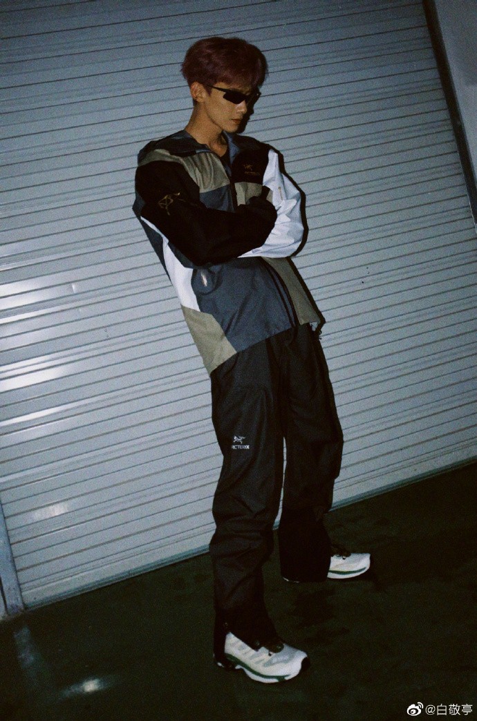 我们的老朋友白敬亭也频繁营业,前两天刚上脚了 Crocs「指纹鞋」,最近又晒出了这双市价四千多的 HIDDEN.NY x Salomon XT-4。