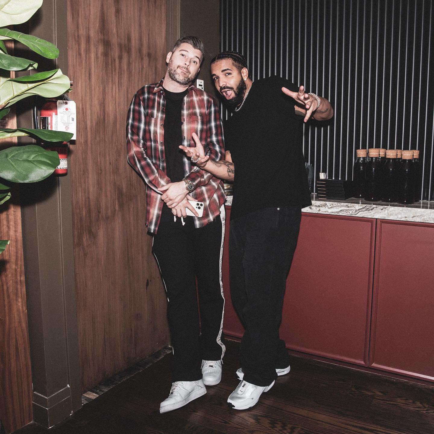 最关键的是似乎与侃爷的造型达成了高度的默契,侃爷最新的穿搭中同样选择了墨镜这件单品。