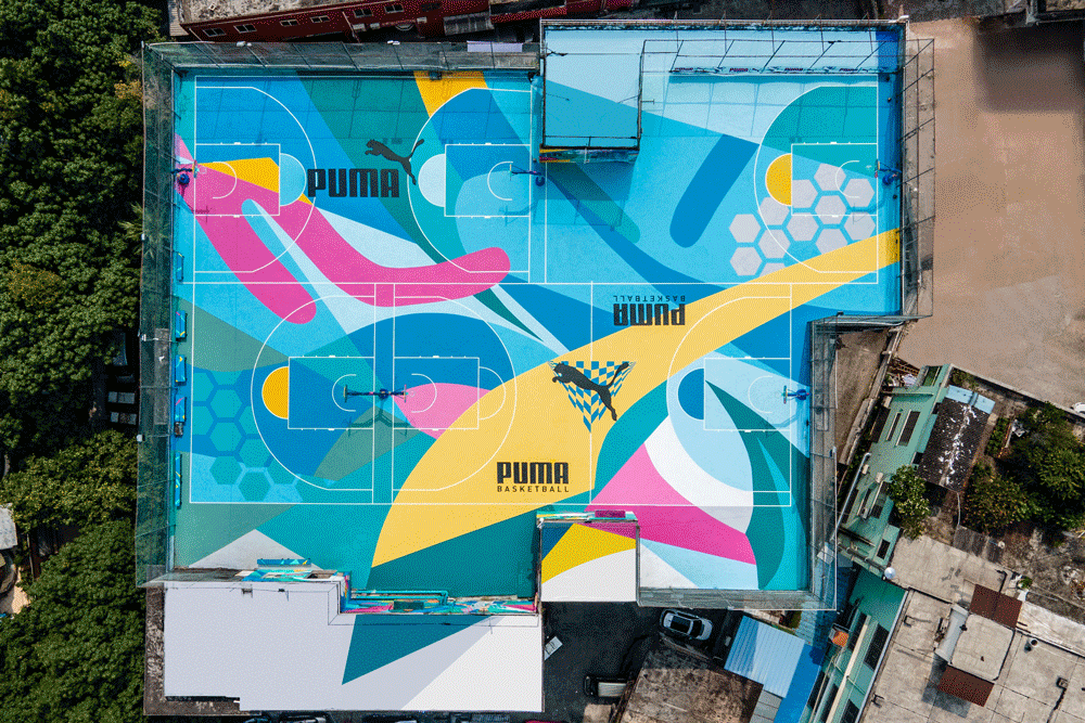 为了迎接 TRC Blaze Court 新配色发布,PUMA 在位于广州太古仓旁的临江天台球场大秀肌肉。
