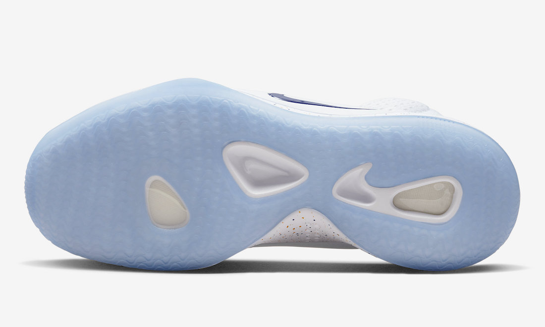 鞋底搭载前后分掌 Zoom 气垫,搭配类似 Hyperdunk 2016 的镂空中底,进一步放大 Zoom 的形变与回弹感受。