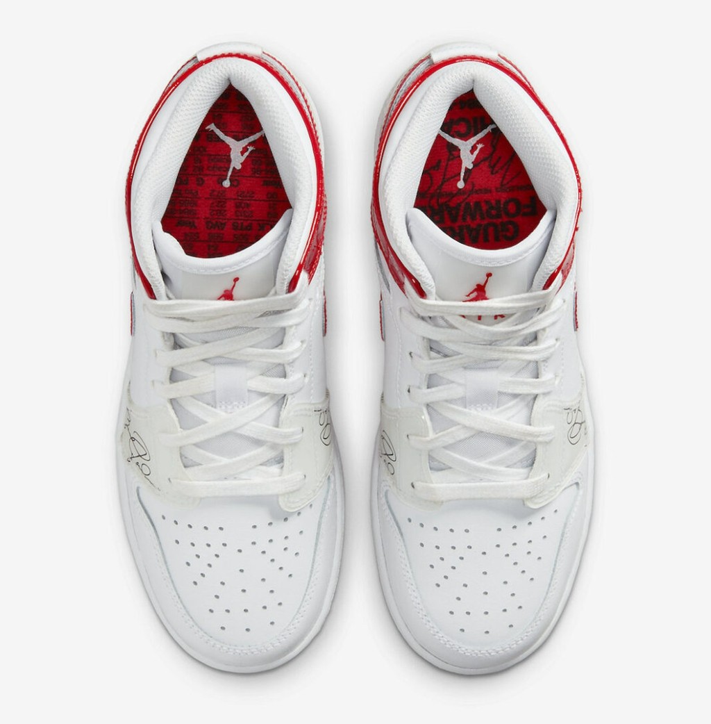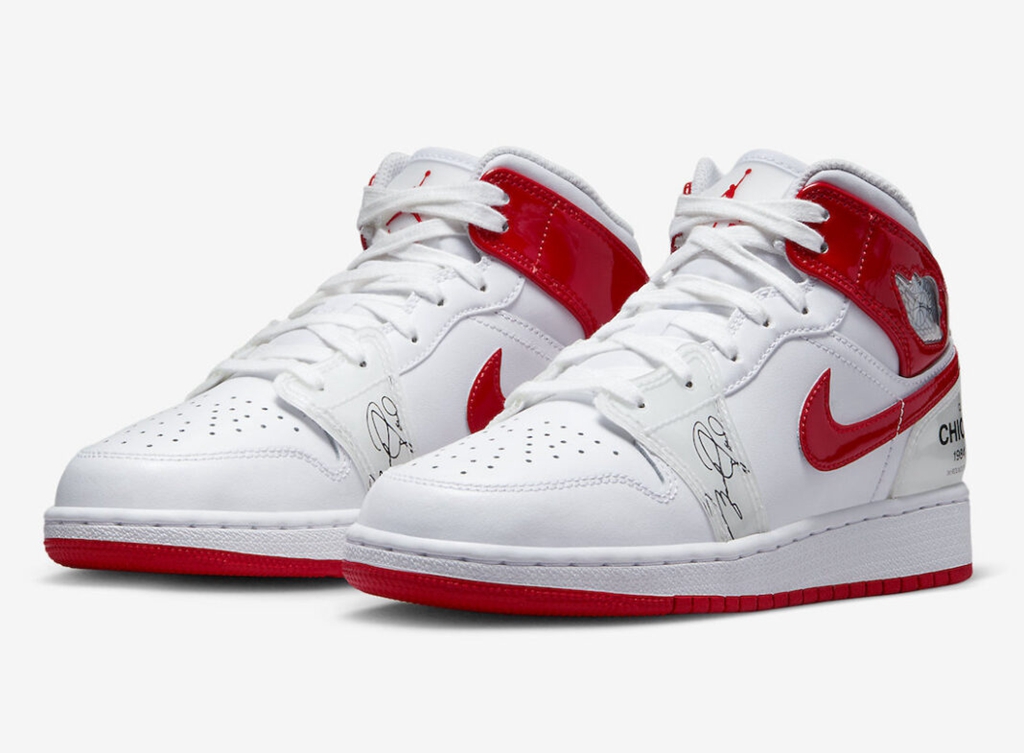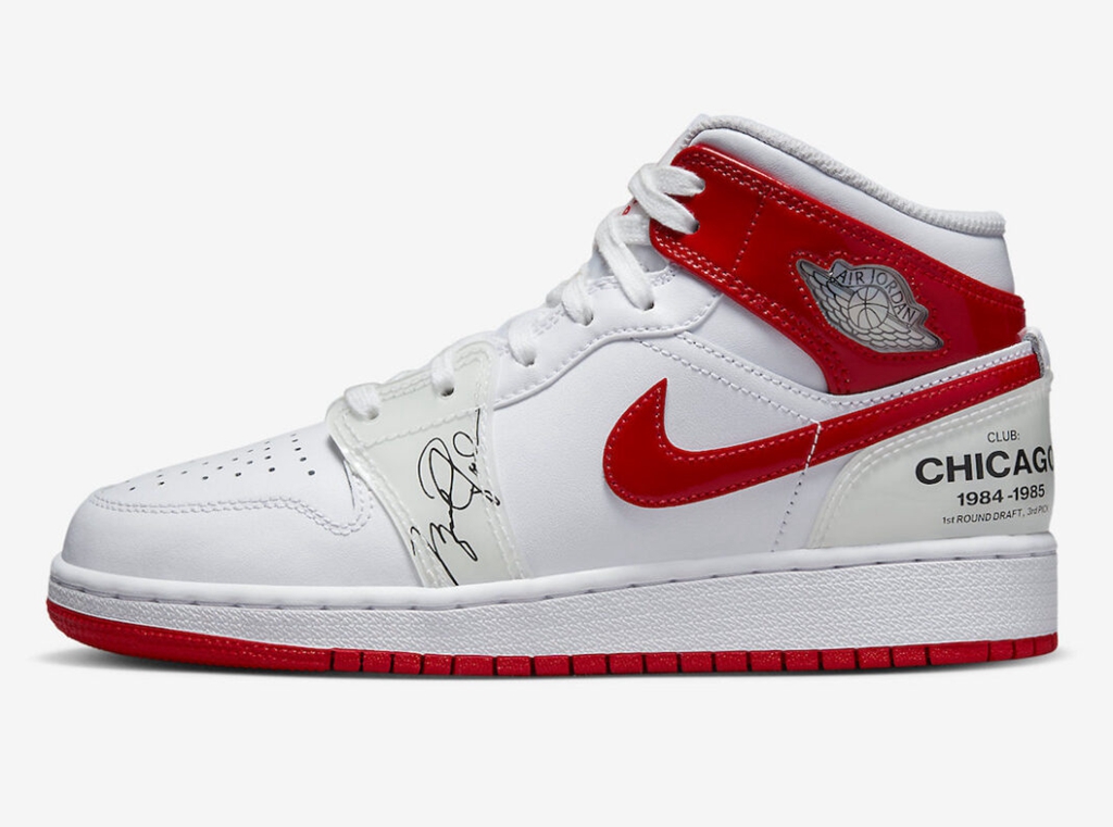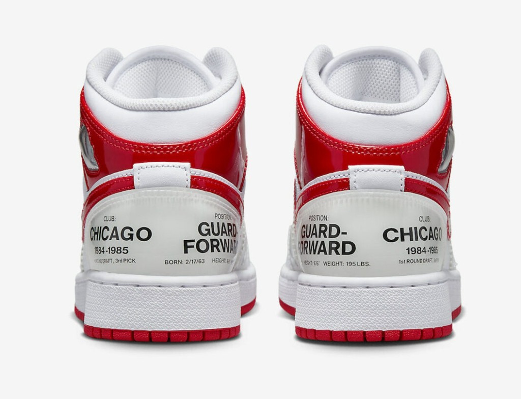 此次配色灵感来源于乔丹的新秀赛季,鞋身的白红配色致敬当年的公牛主场球衣配色。
