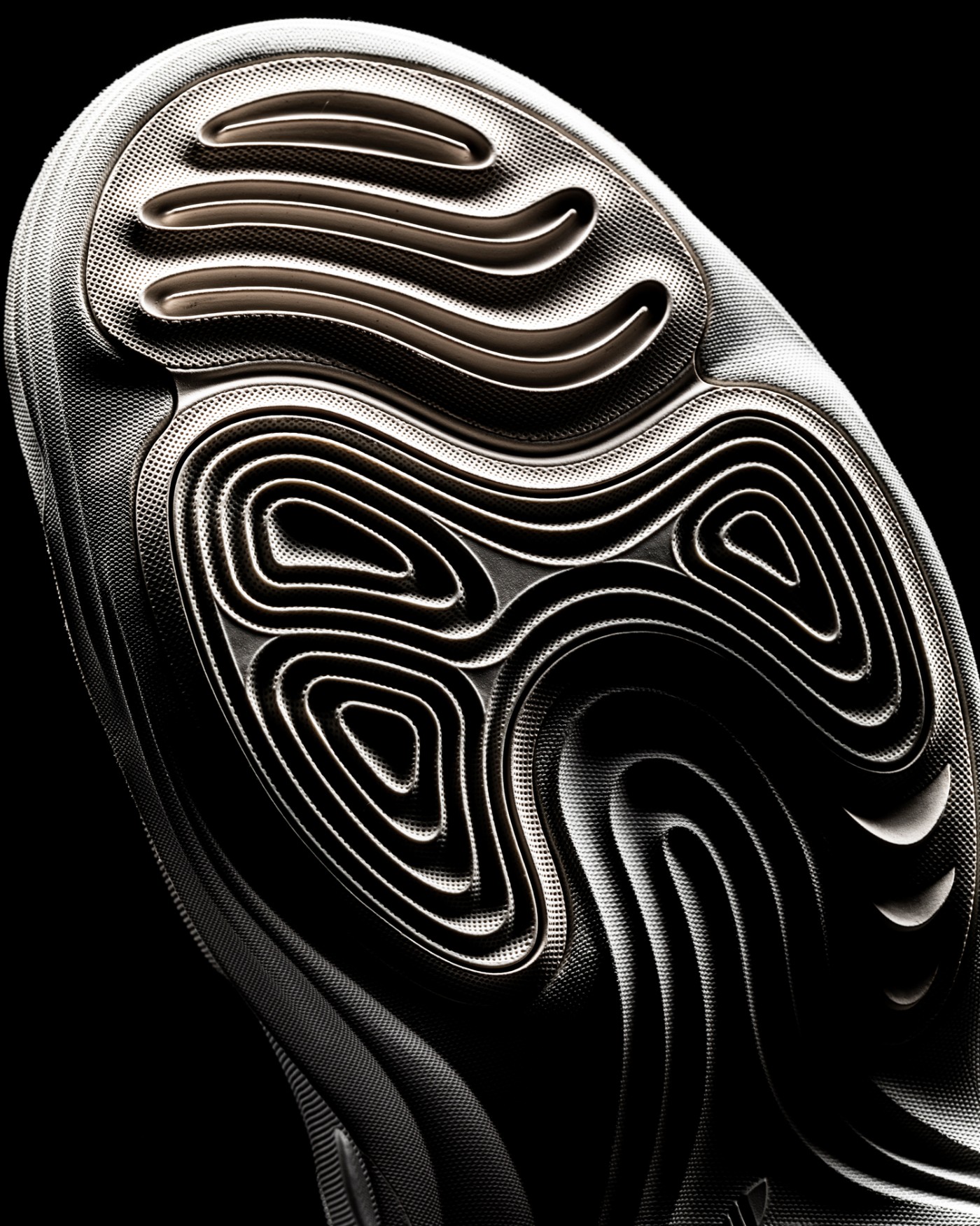 等高线地图一般的环形纹路完美呼应鞋面,为整双鞋的设计收尾。