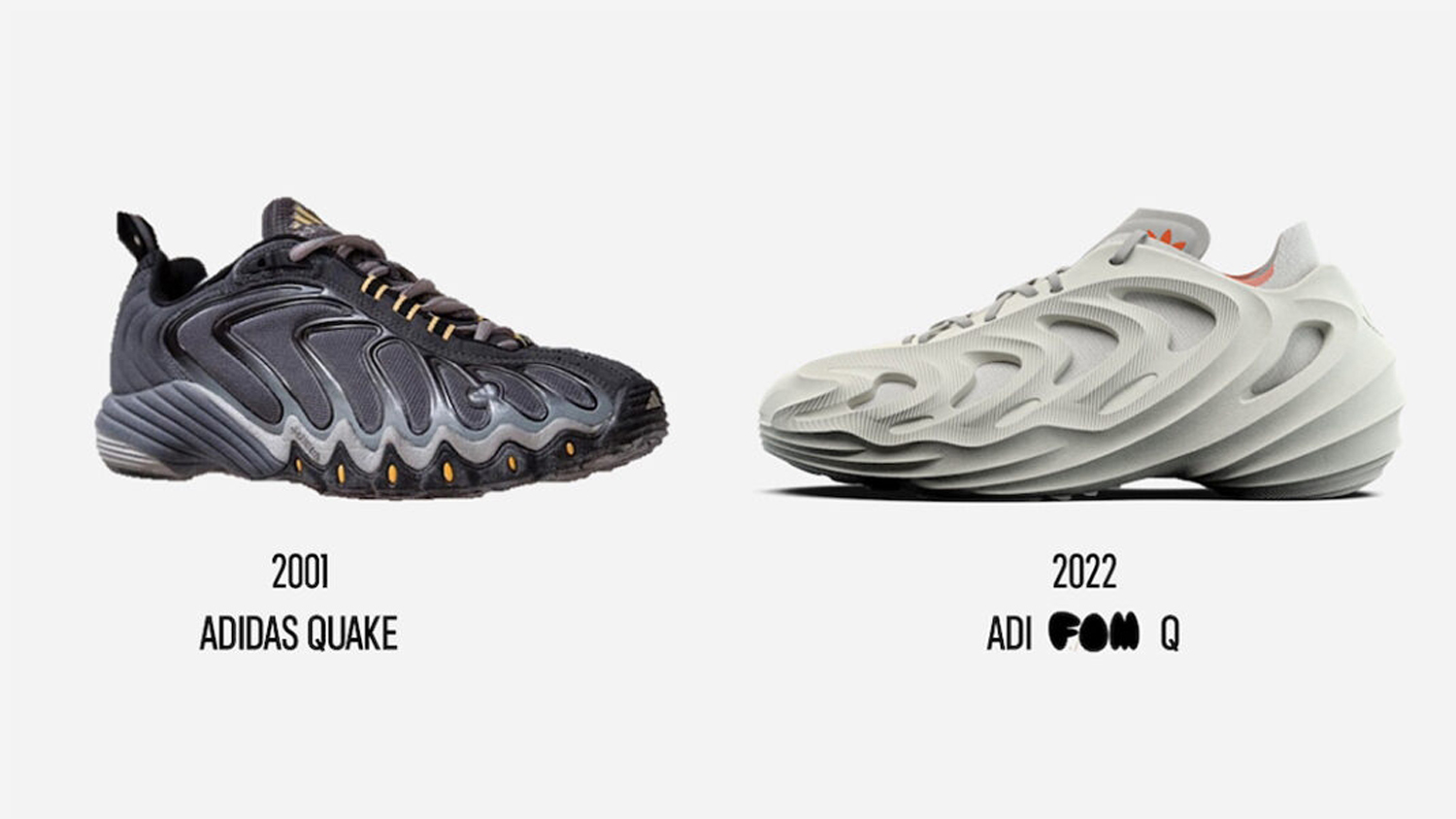鞋名中的 Q,则是说明了这款鞋的灵感来源:2001 年诞生的 adidas Quake。