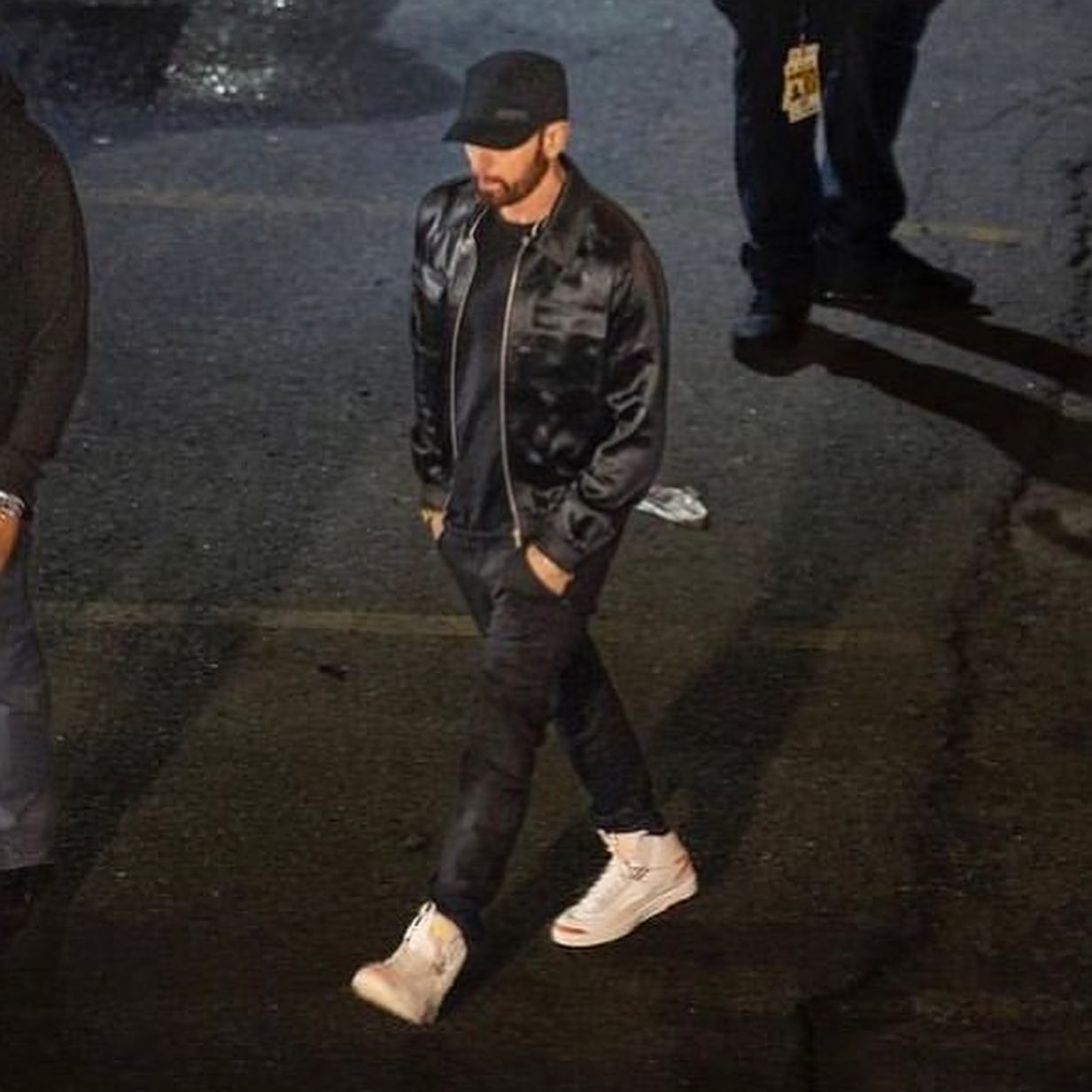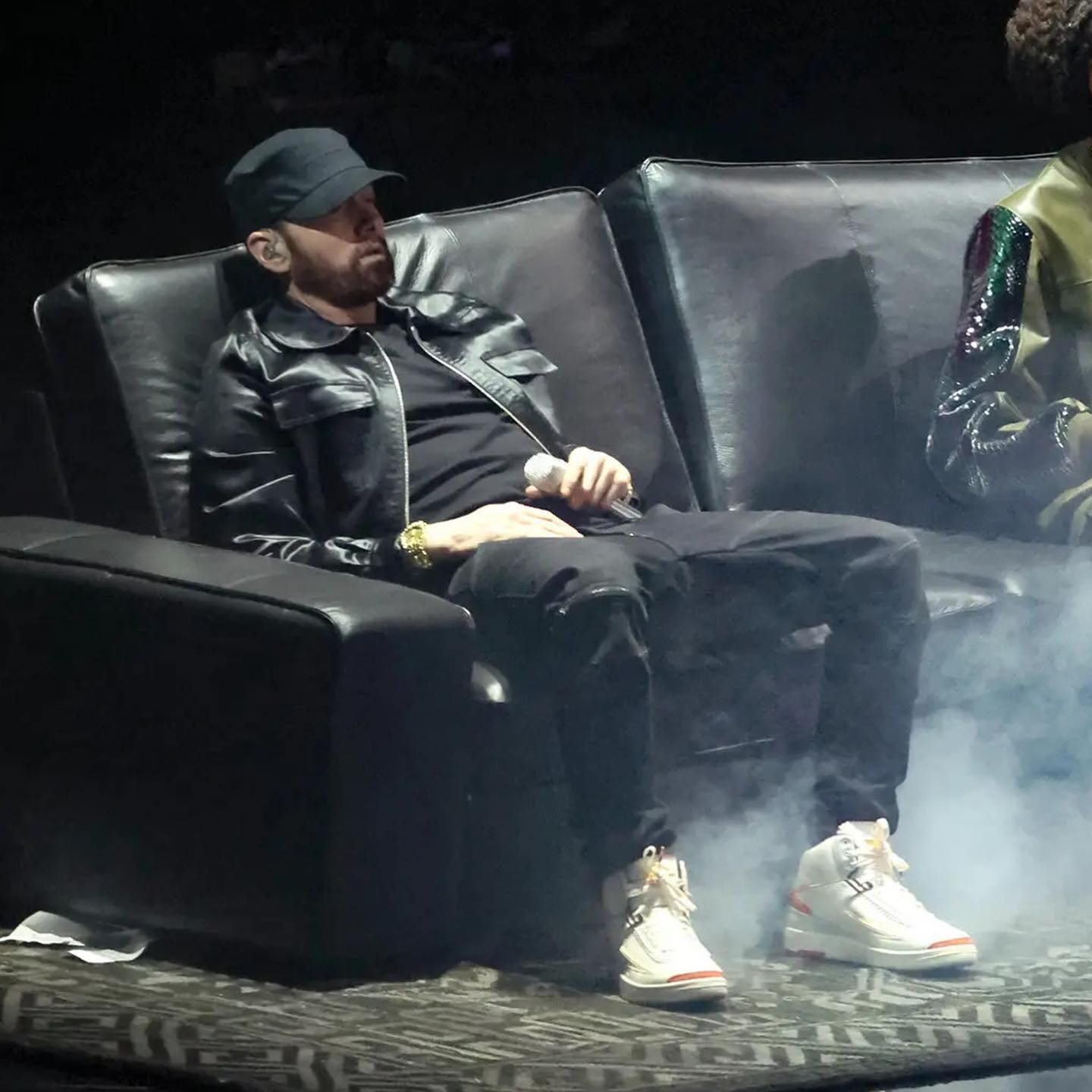 Eminem 近期在 MTV VMAs 现场上脚 Maison Château Rouge x Air Jordan 2,一席酷黑装扮衬托更突显鞋款的醒目质感。