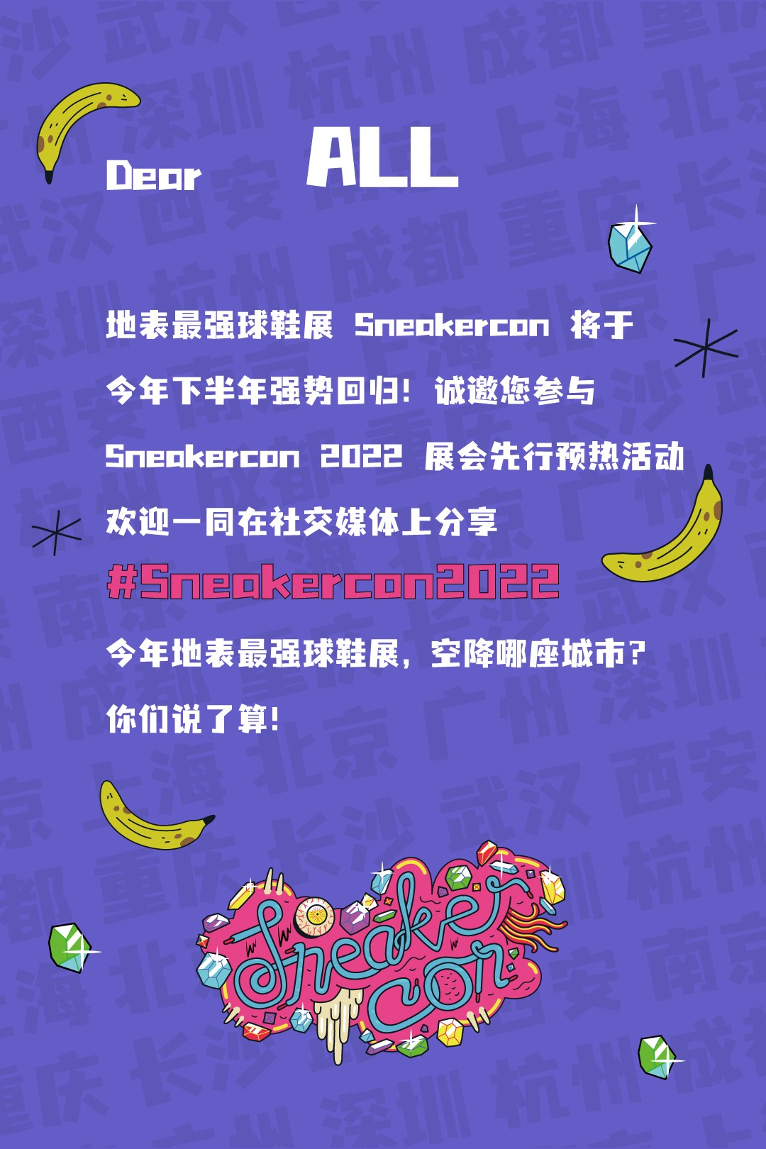 与此同时,诚邀屏幕前的各位,在社交平台上分享你所在的城市和球鞋回忆,并附上 #SneakerCon2022 的标签,和我们一同选出年末展会举办城市,为你的城市发声!