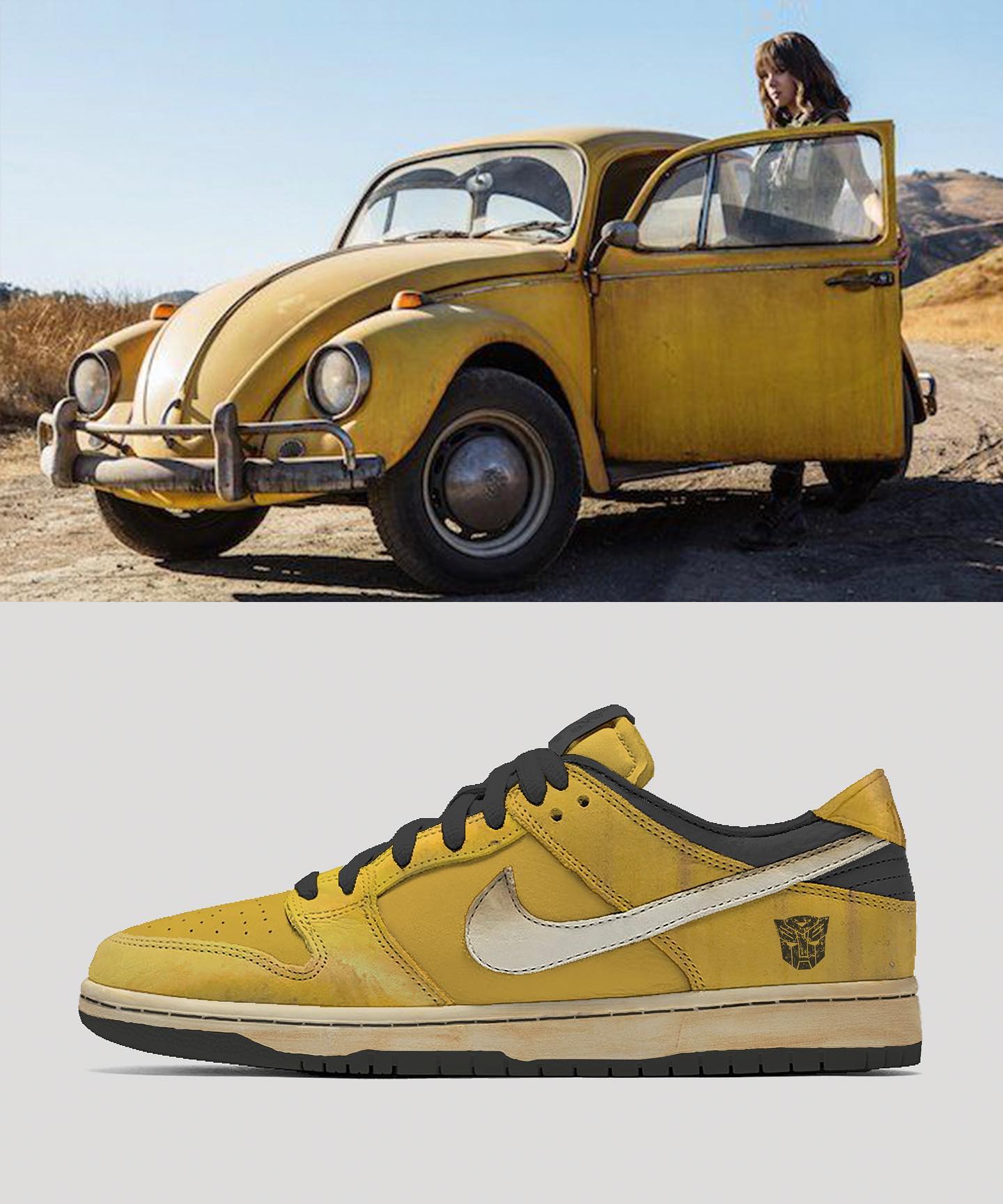 首先是一款致敬电影《大黄蜂》的配色,鞋身以黄色为主体。