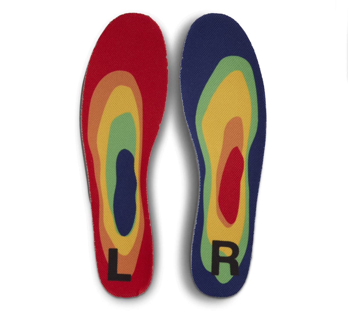 鞋垫为彩虹主题,颜值方面确实没话说,还印有帮你区分左右脚的 L、R 印花。