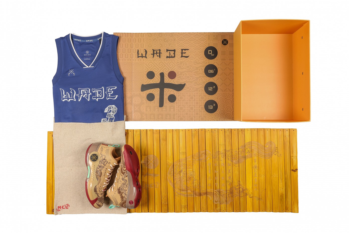此次联名将以特殊礼盒包装发售,采用竹简设计呼应鞋款的文化主题,除了鞋款还包含联名服饰。