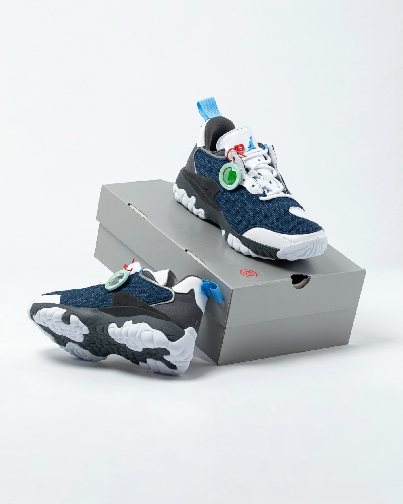 根据陈冠希本人的叙述,Jordan Delta 2 的鞋面造型让他一下联想到 Air Jordan 13,于是和 Jordan Brand 一拍即合,打造了这双非常特别的「合体鞋」。
