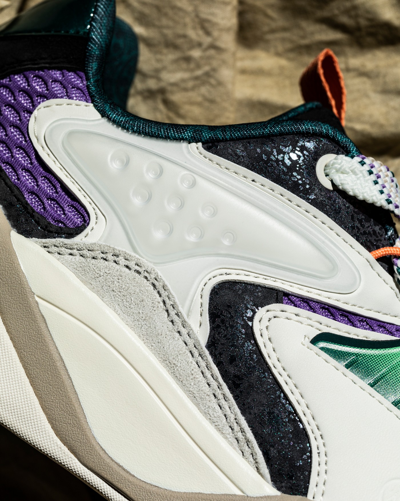 编织打造的粗线条鞋带以及丰富的元素点缀,进一步增加了这款鞋的潮流属性。