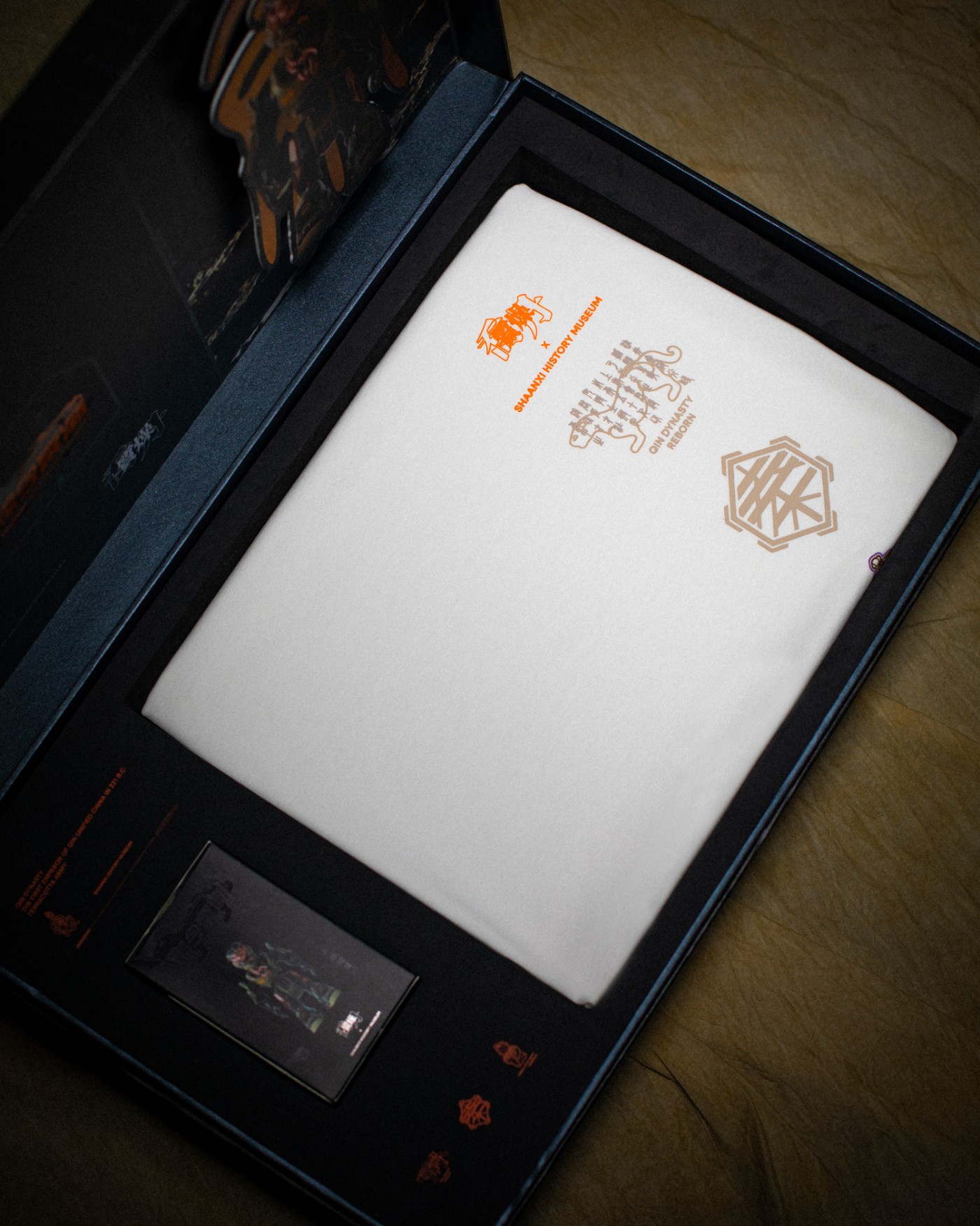 此次联名除了这款 T 恤,还有更多服饰登场。和鞋款一样,融合秦朝历史元素与前卫科幻造型。