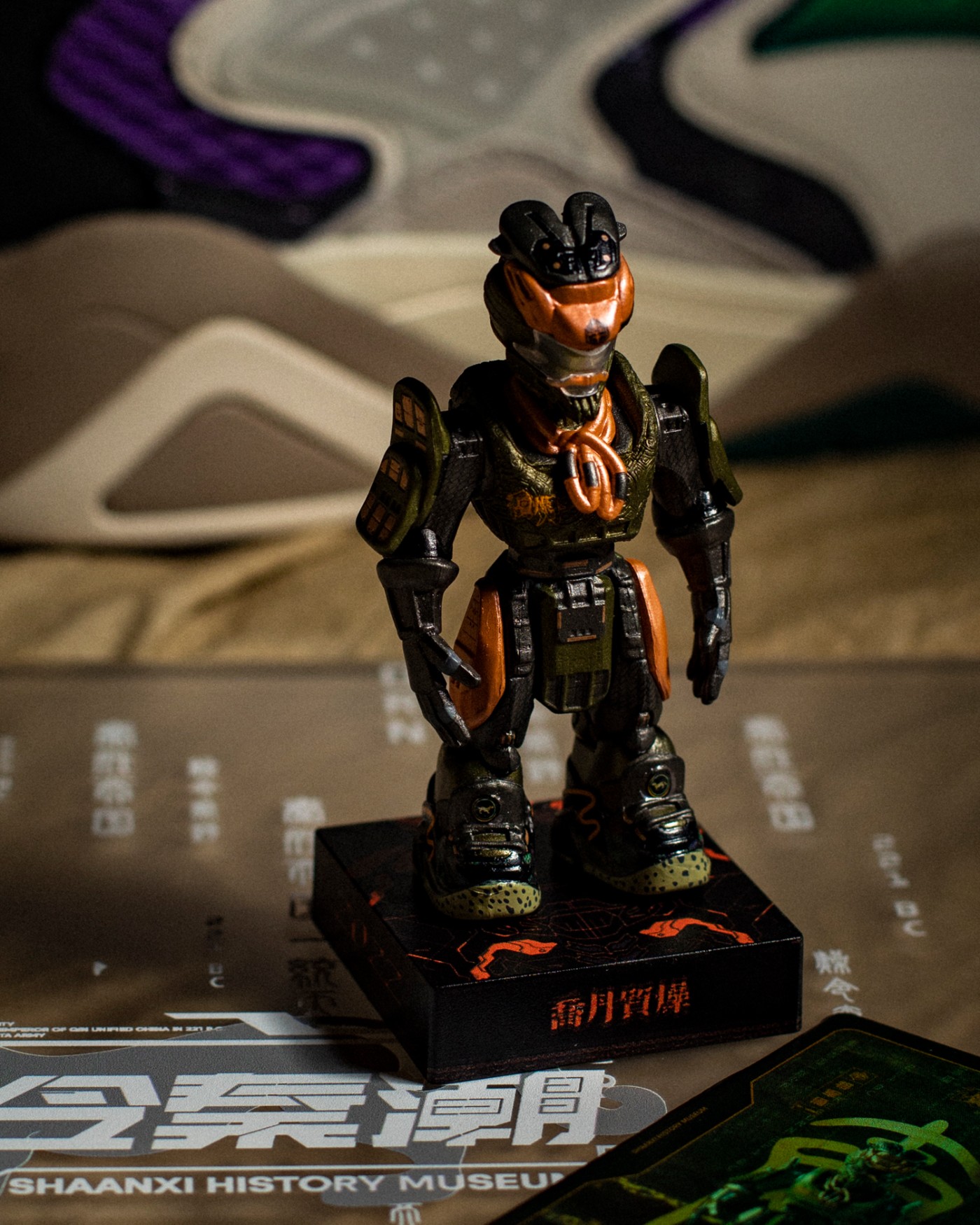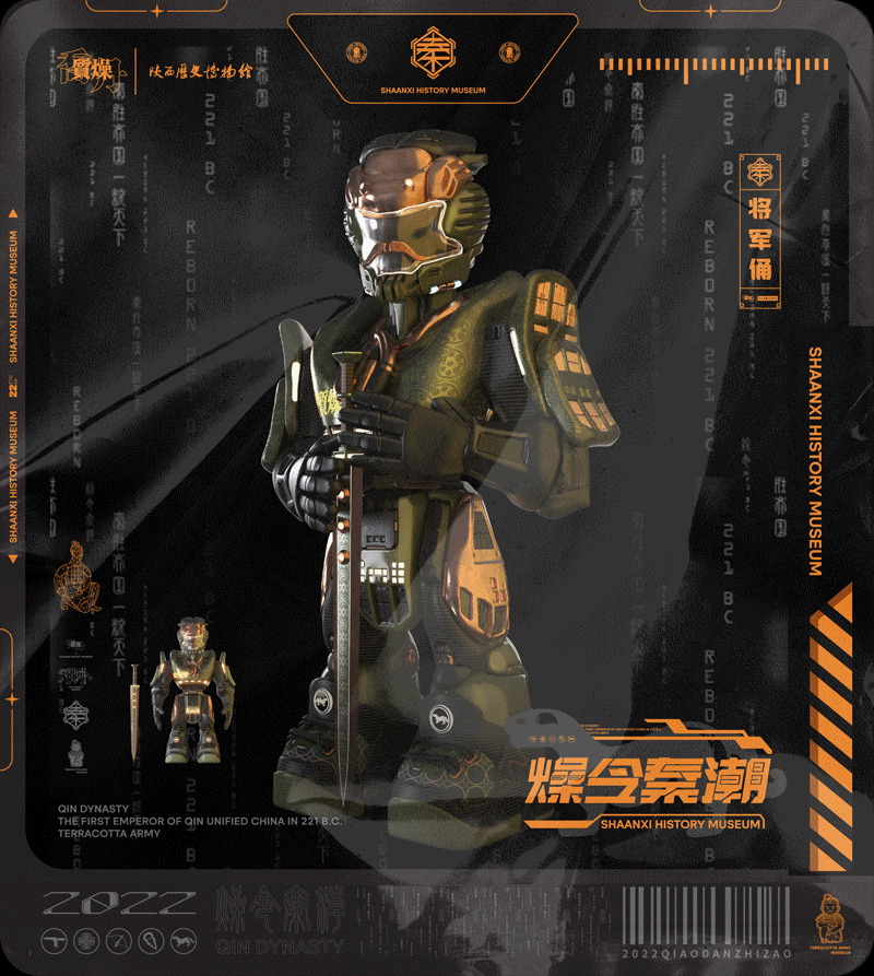 这款「潮俑」玩偶盲盒也是此次联名的一大亮点,将兵马俑造型与科技感的机甲相结合。