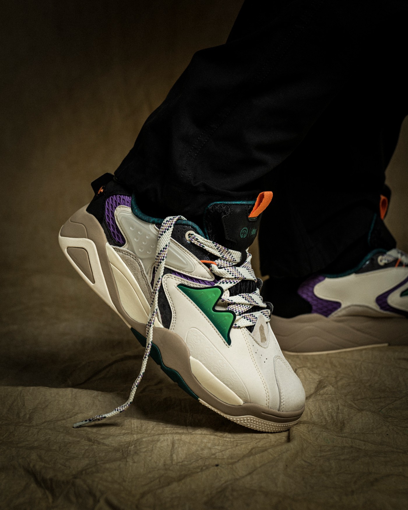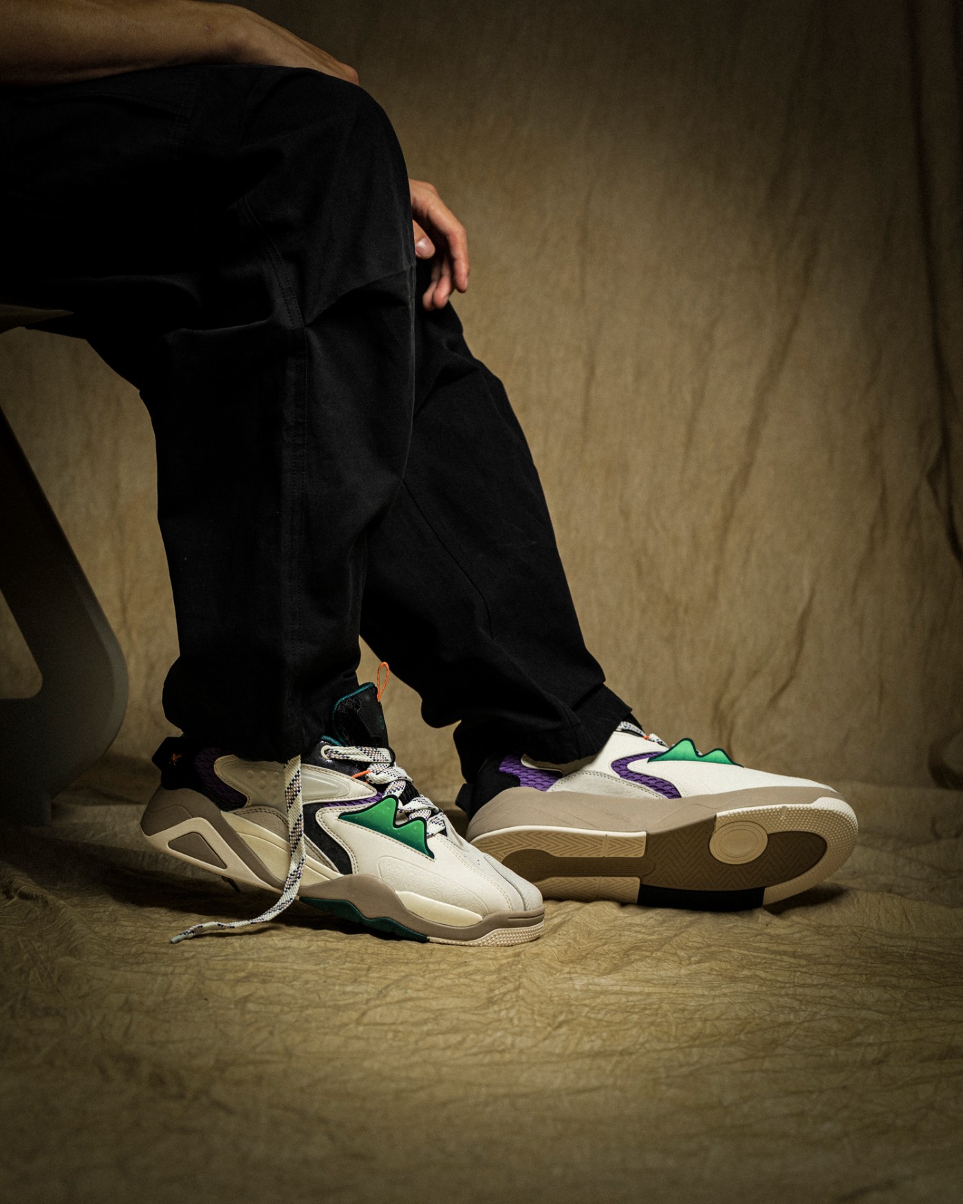 这款鞋型整体采用了当下流行复古廓形,符合潮流玩家的穿搭审美。