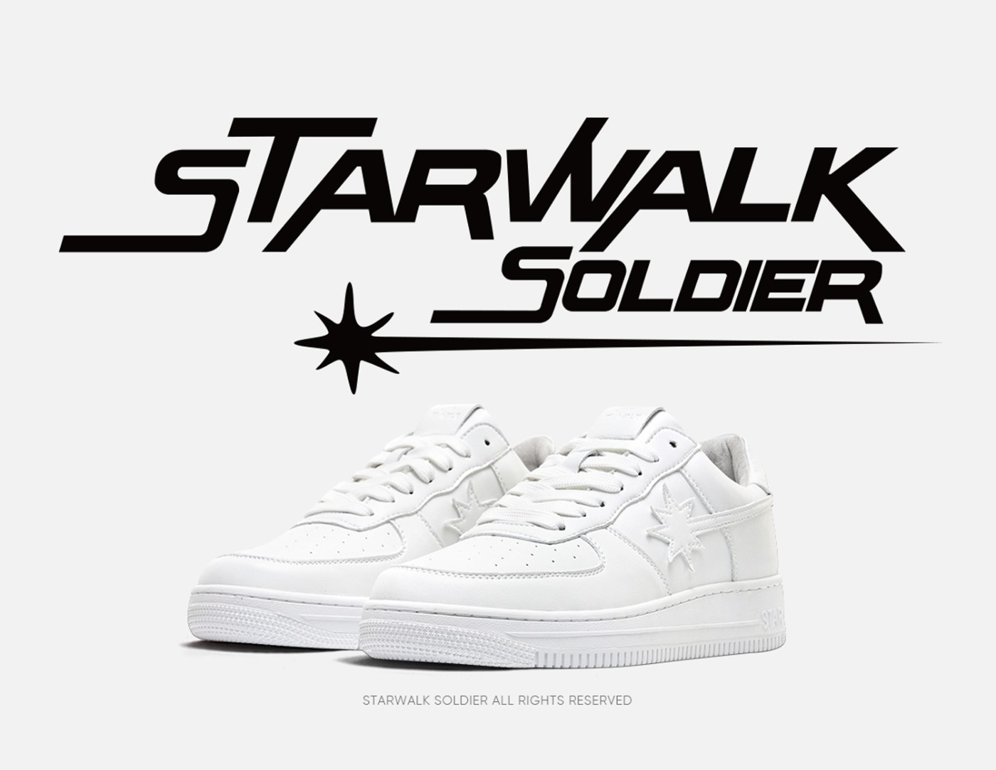 最开始猜测是 Air Force 1 或 BAPE STA,但线条贯穿整个中底的设计,说明这是一双 STARWALK 球鞋。