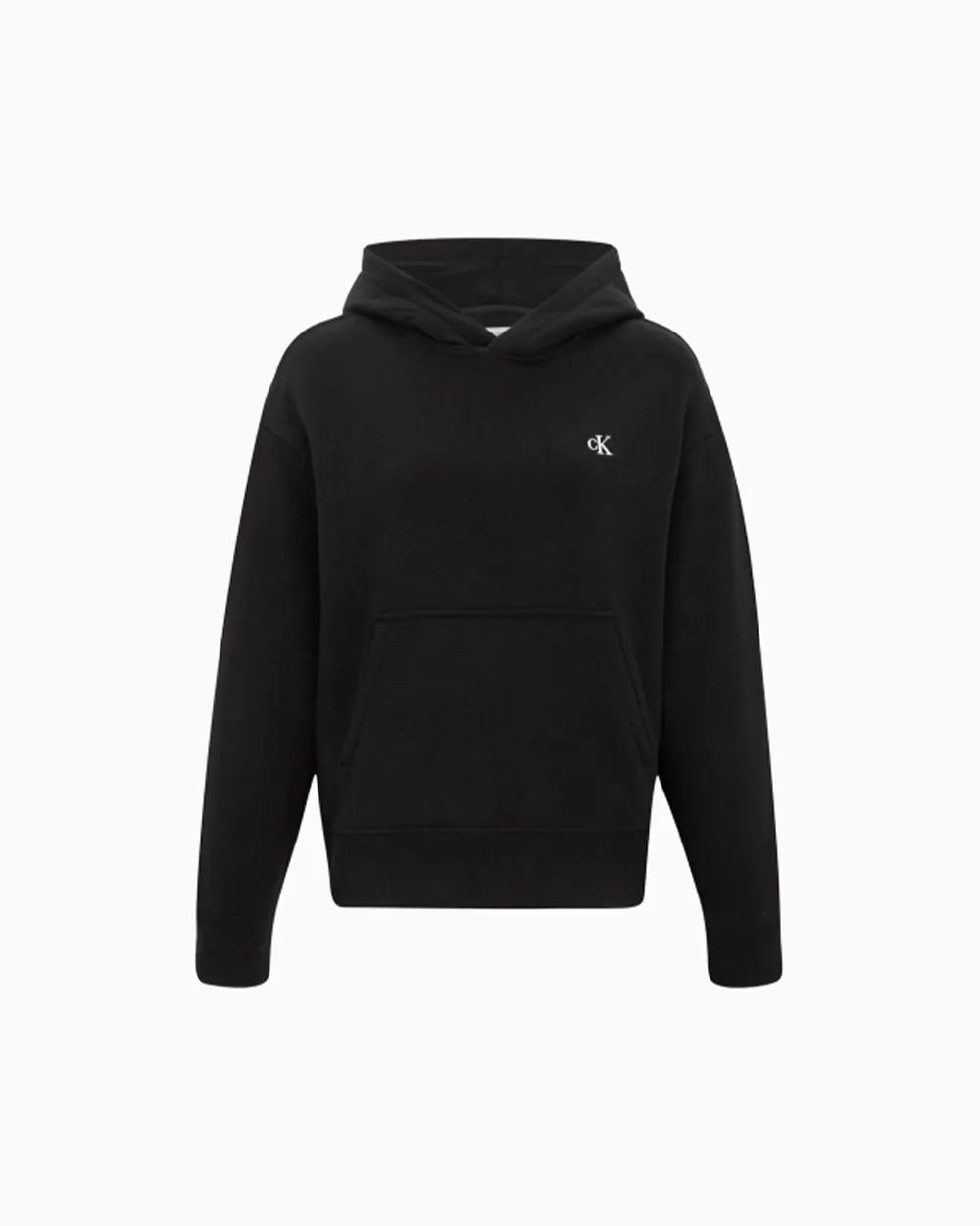 Jennie 的第五组造型更加休闲、日常,上衣搭配经典黑色羊毛卫衣,胸前点缀 CK LOGO,内里采用羊毛材质打造,带来更好的穿着体验。