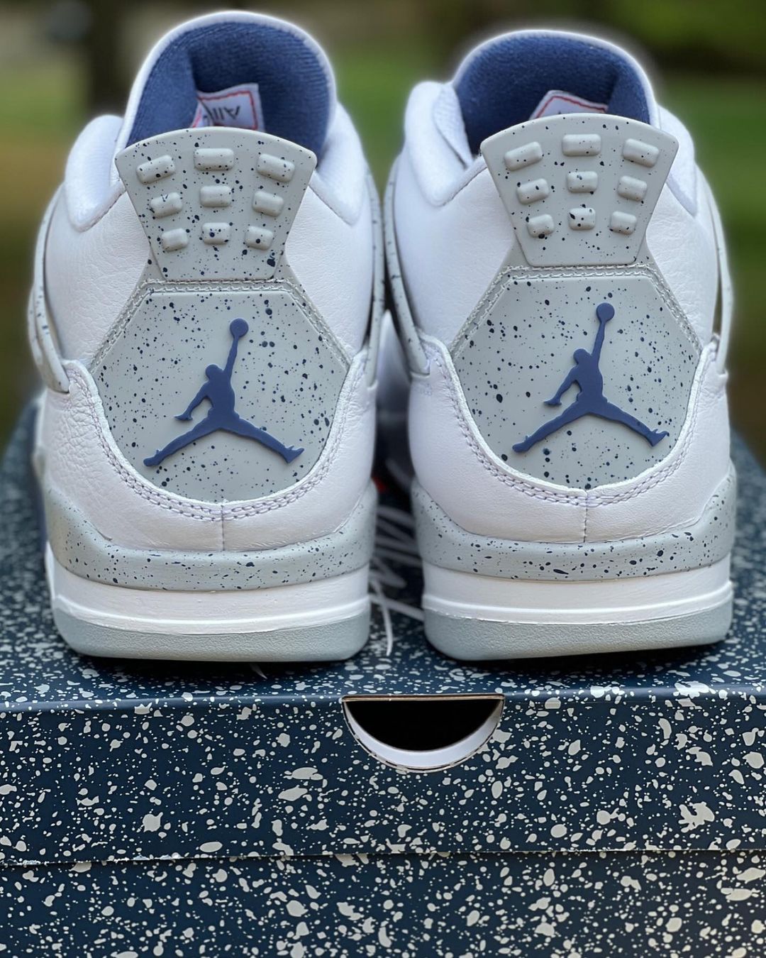 鞋面以白色皮革材质覆盖,延续一贯的质感表现。鞋带扣、中底及内衬注入蓝色,构色方案与「白水泥」Air Jordan 4 颇为相似。