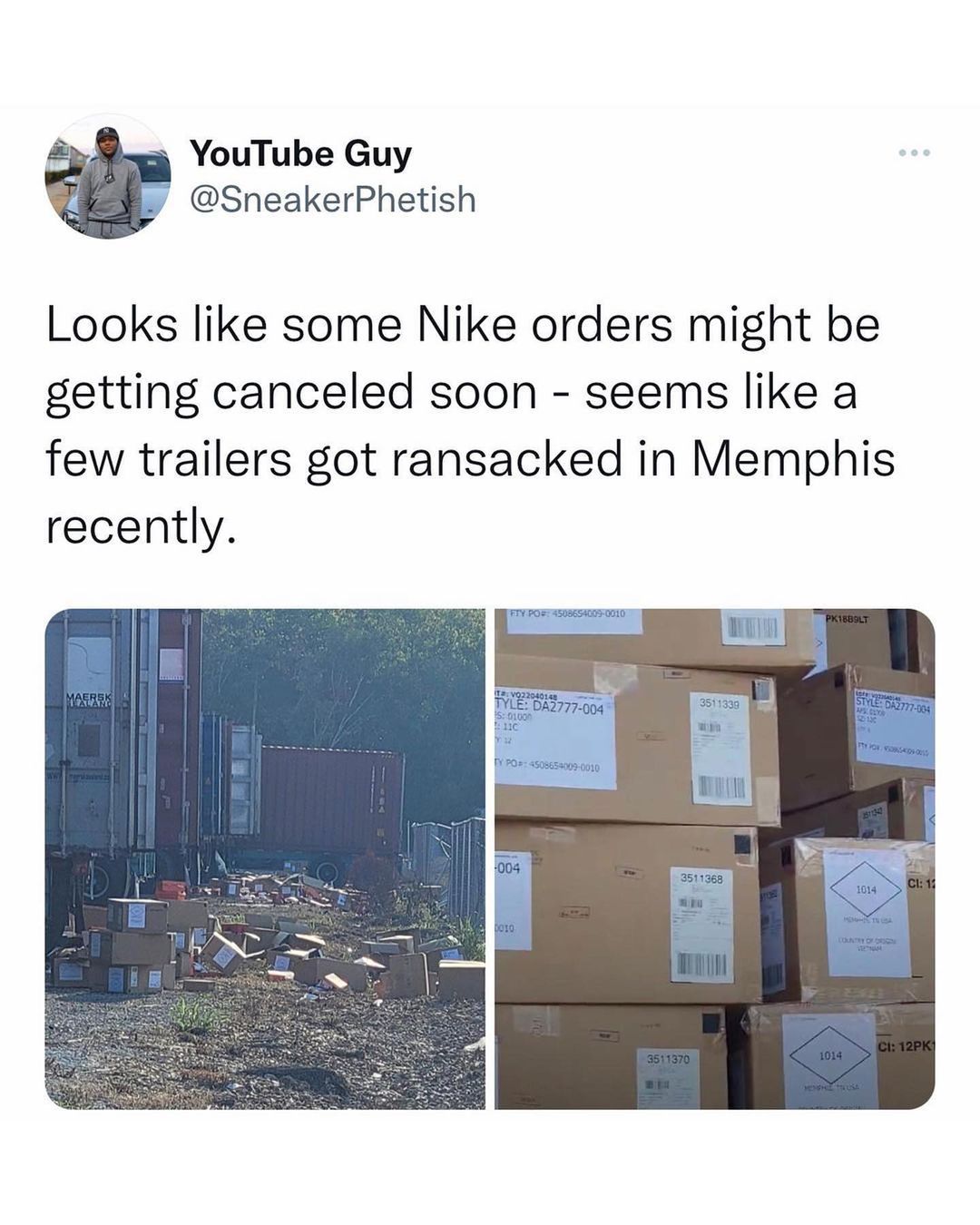 位于孟菲斯的 20 辆 Nike 货车惨遭盗窃,海外消息指出,价值超过 550 万人民币的球鞋被「0 元购」......