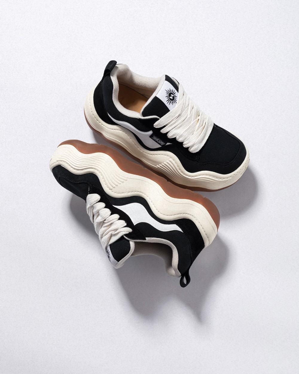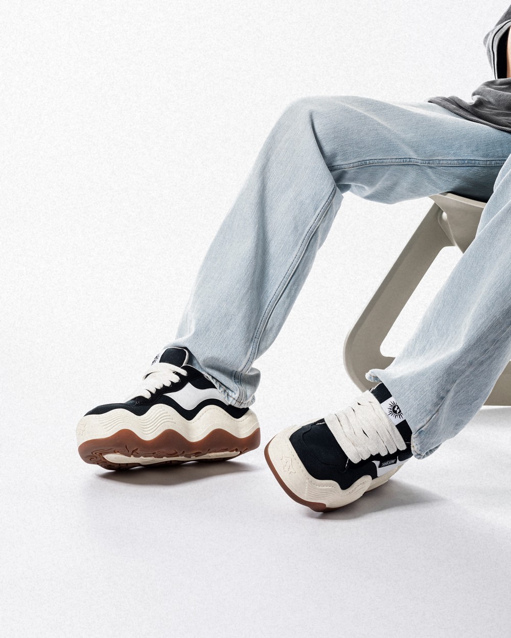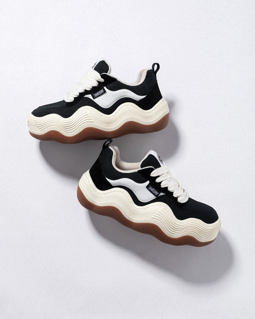 咱们先从最抓人眼球的外观来说,圆润的鞋身、宽大的粗鞋带、饱满的厚鞋舌,与当下最火的面包鞋型不谋而合。