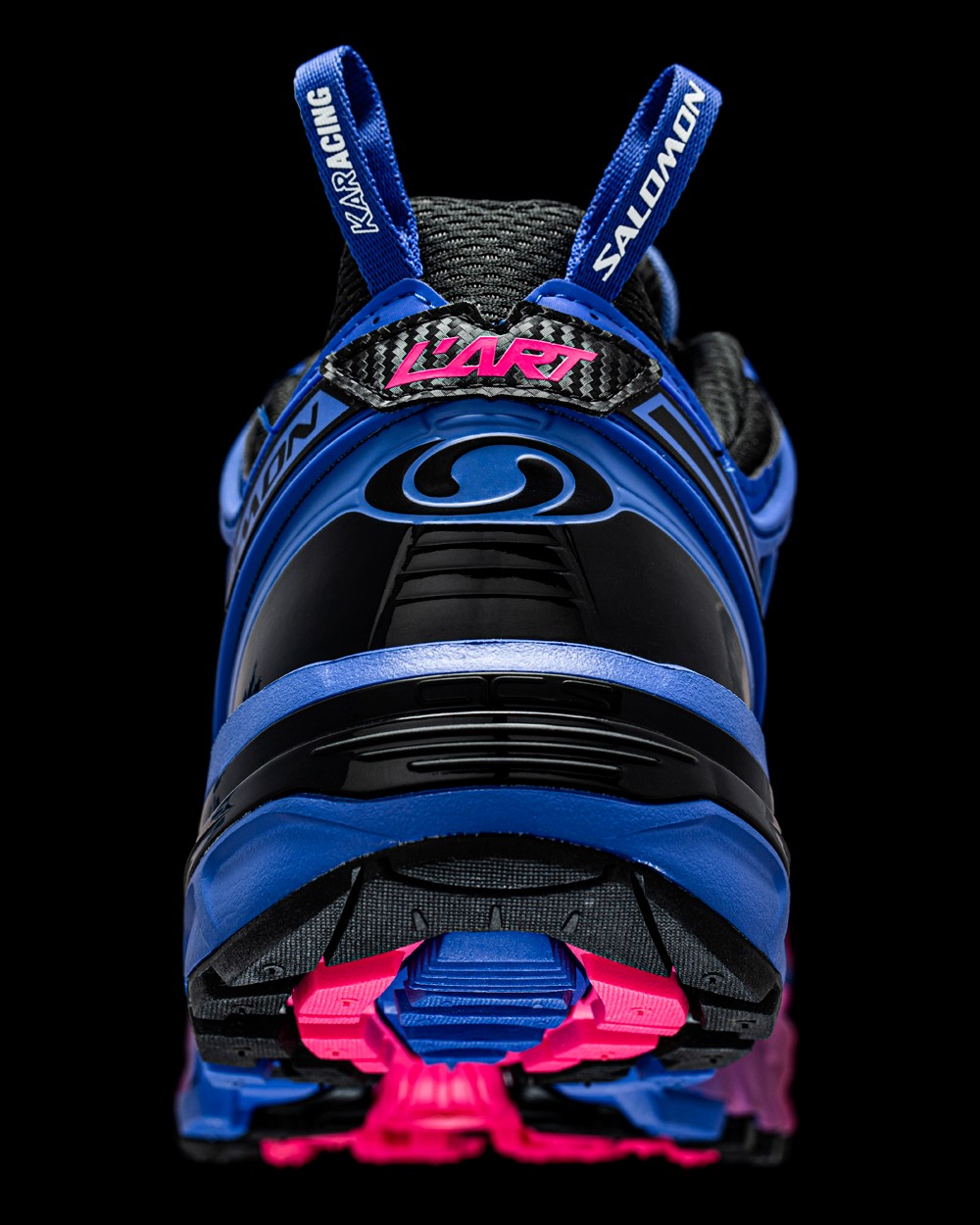联名身份主要体现在后跟部分,兔耳造型提环分别点缀 KARACING 及 Salomon 字样以及鞋跟装饰 L’Art 缩写。
