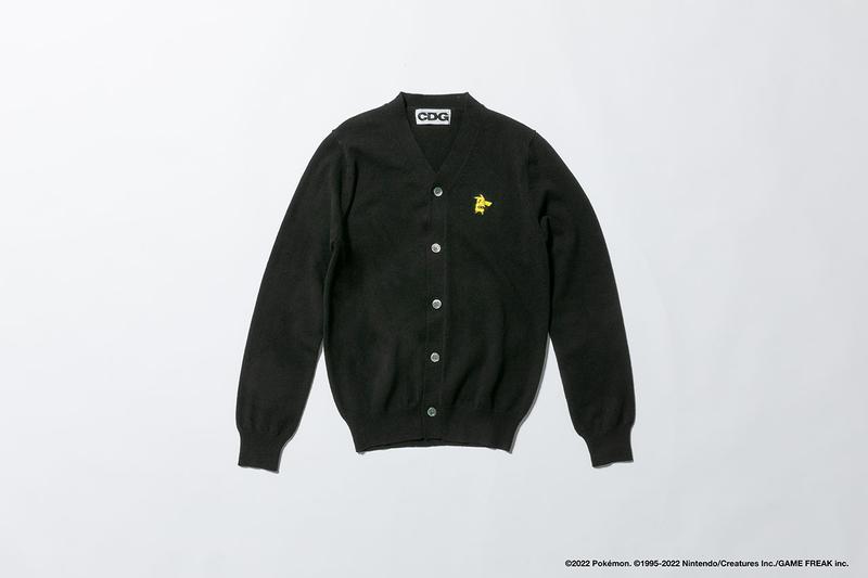 主要以黑白灰打造,结合 CDG、Pokémon 标志以及皮卡丘图样,带来独特的视觉体验。
