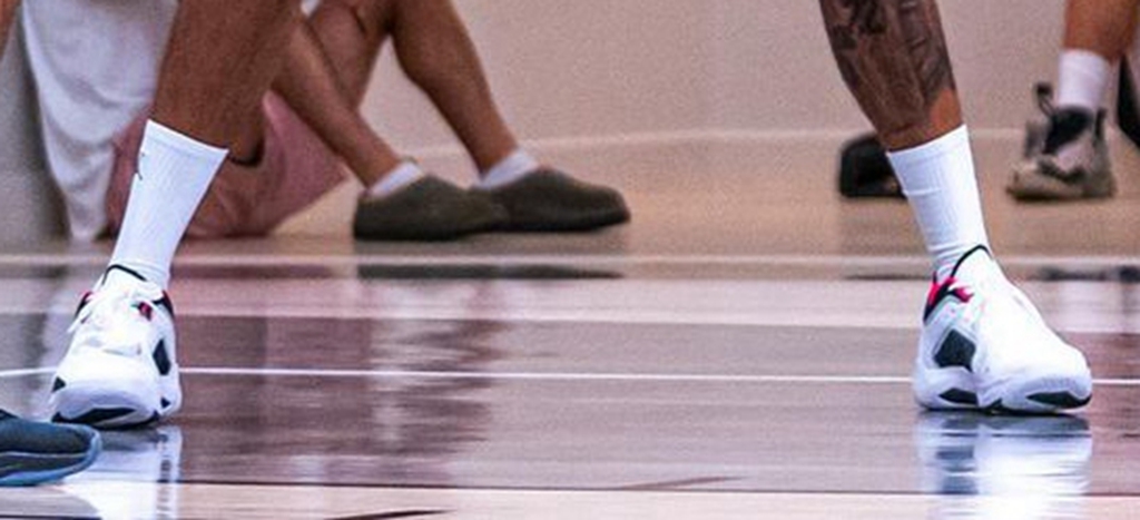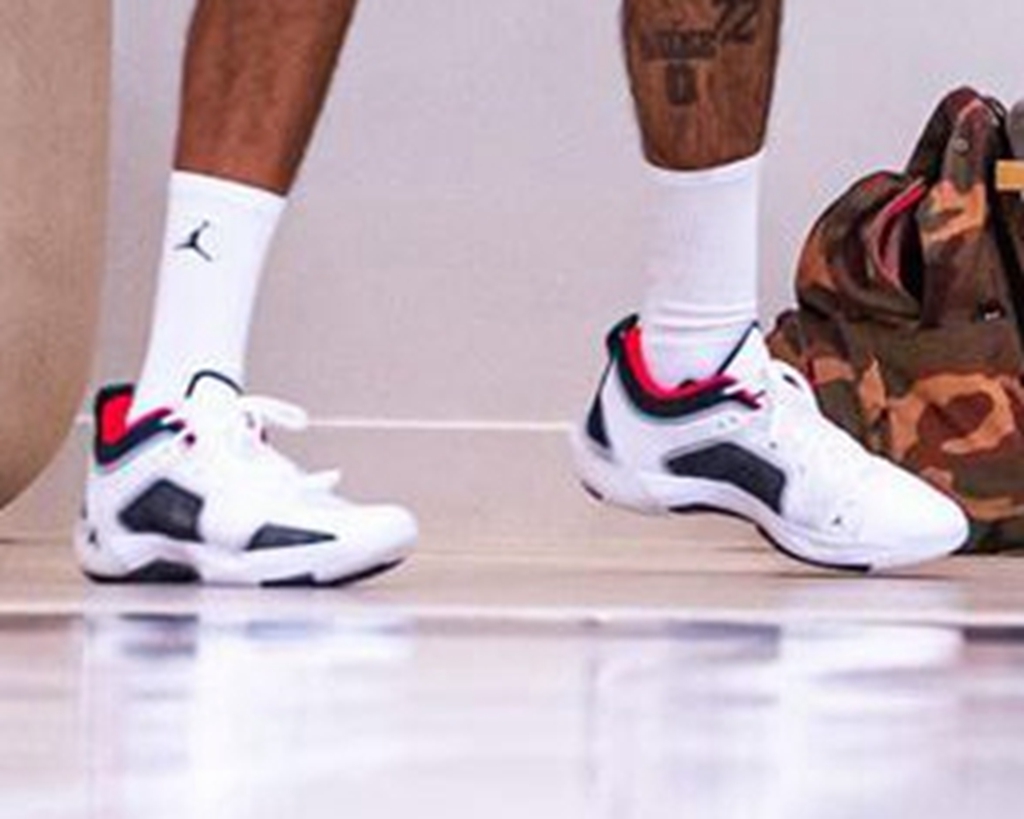首先来看塔图姆脚下的这双,虽然比较模糊,但中底很明显是 Air Jordan 37 的模样。