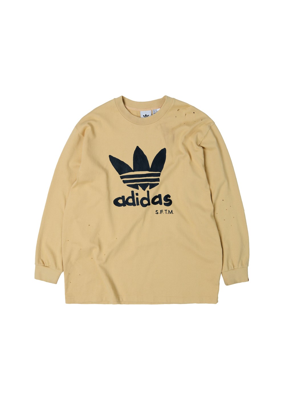 长短袖 T 恤以大面积印花图案呈现,整体的破坏与水洗效果更呈现出做旧式的复古韵味。