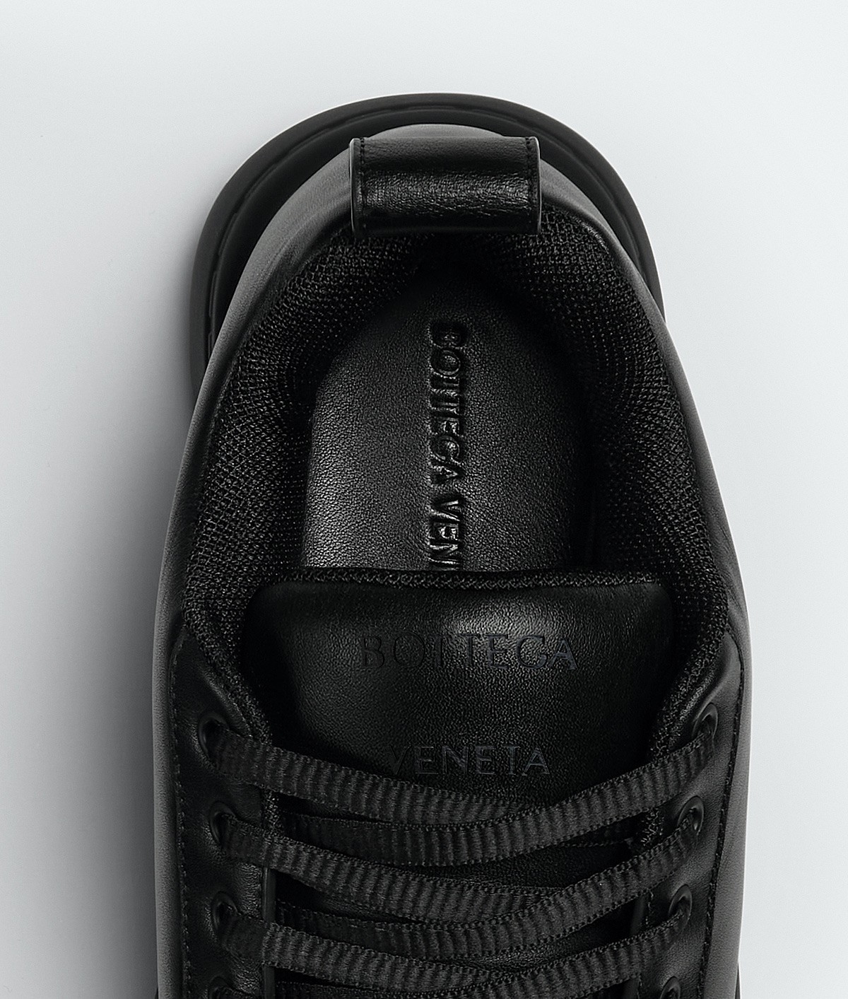 黑色款搭配了生胶外底,在帅气之余,又以皮革光泽彰显了 Bottega Veneta 高标准的用料选取。