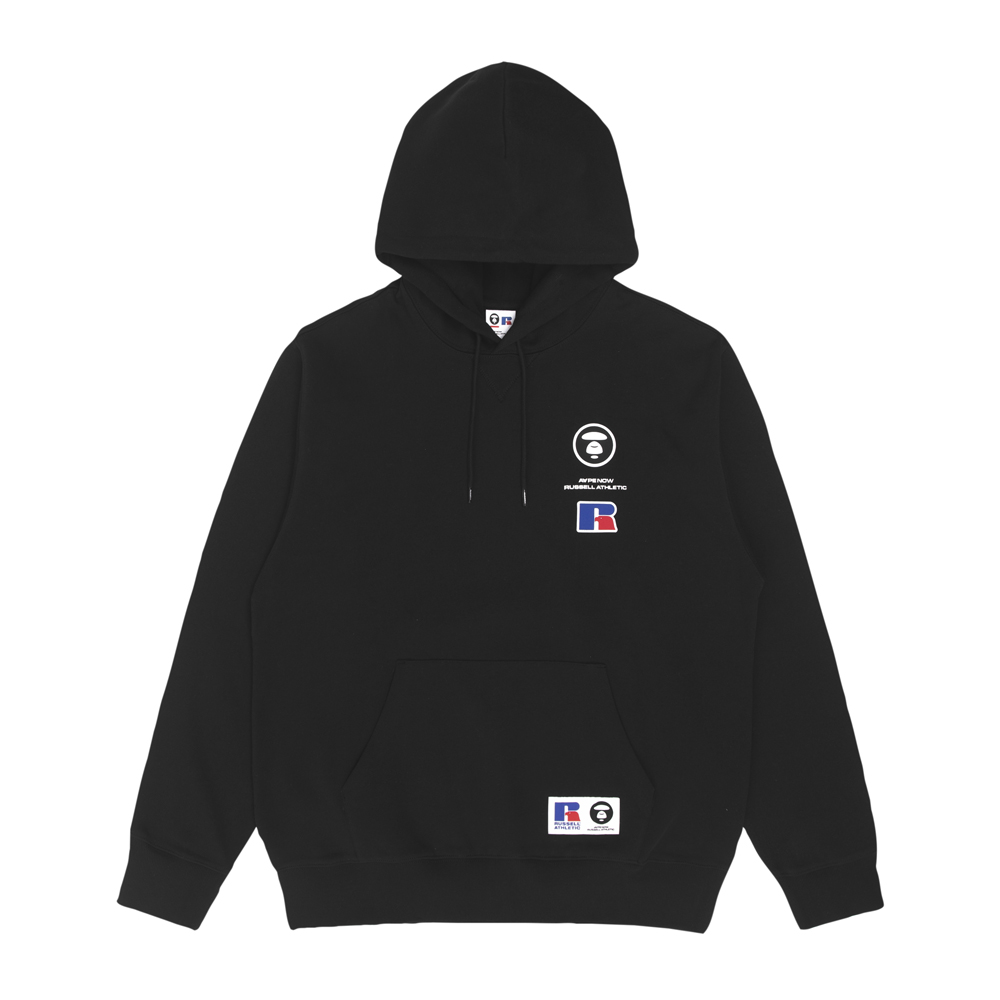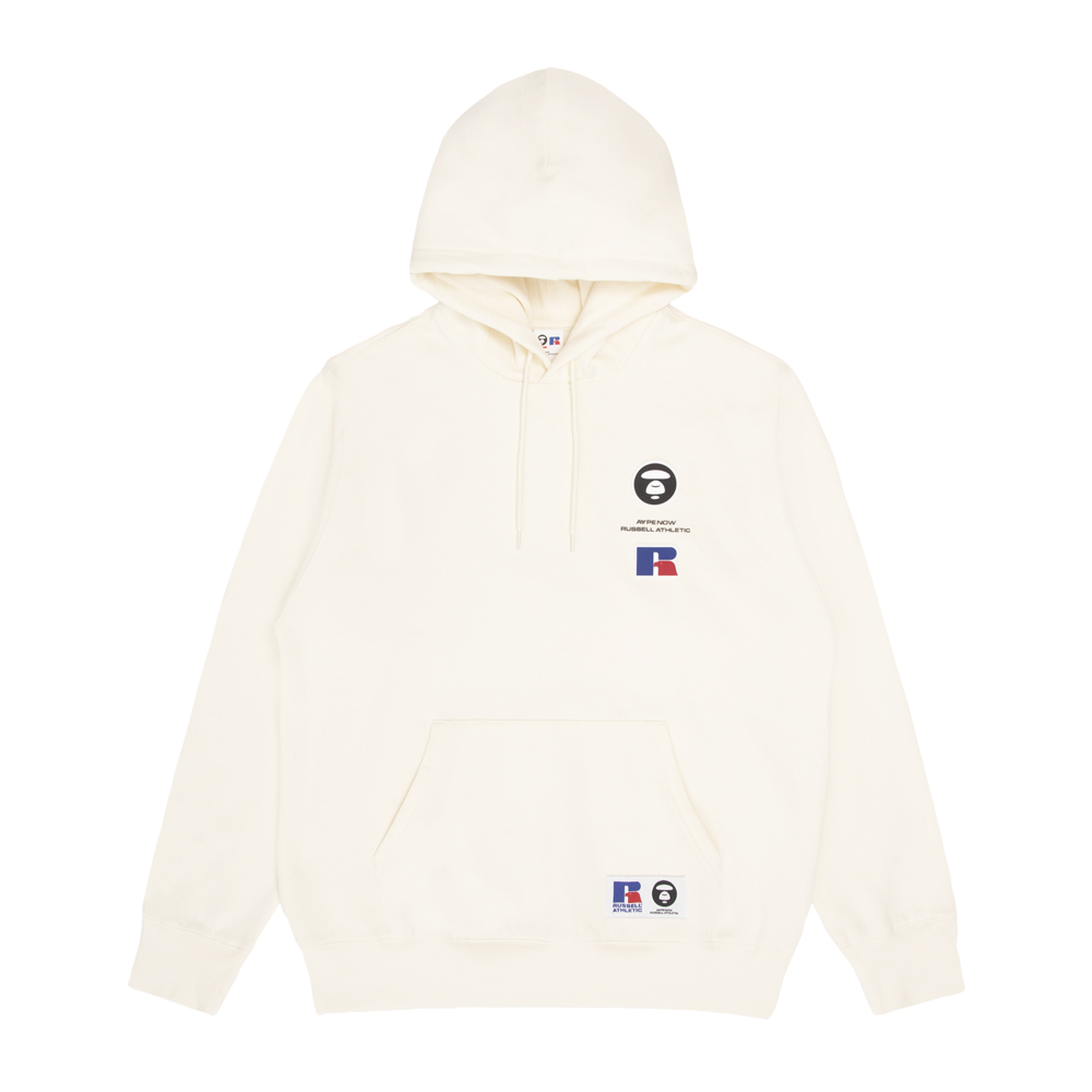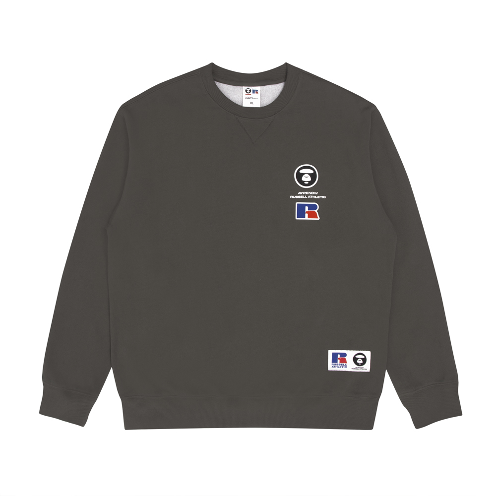 以 RUSSELL ATHLETIC 鹰头「R」标与 AAPENOW 简洁的 MOONFACE 猿颜标志呈现在单品上,彰显联名身份。