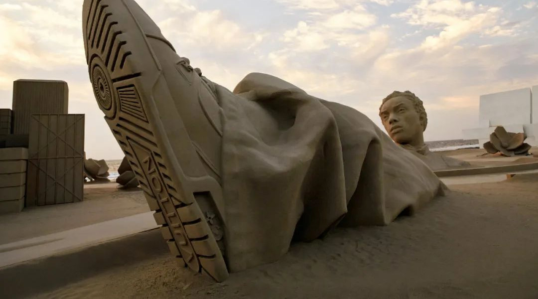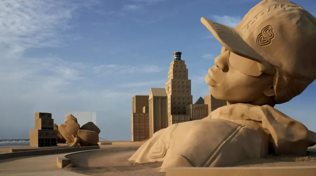 秀场则以巨型沙雕和 ∞ 形状的 T 台,创造了前所未有的视觉体验。