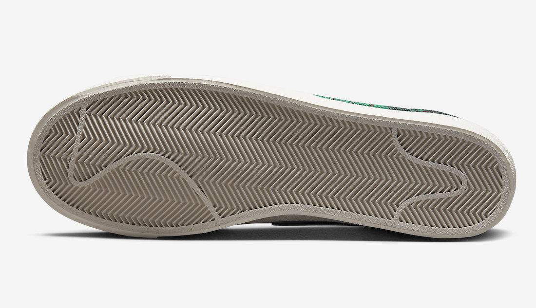 整双鞋采用 Blazer Low 经典鞋型设计,搭配纯白色皮革,呈现出不错的复古视觉效果。