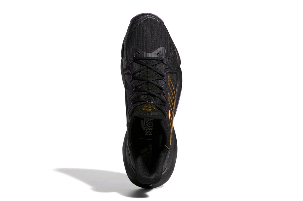 整体设计充满黑豹元素,从鞋面的纹理,到黑、紫搭配的色调,都在致敬黑豹经典的战衣造型。
