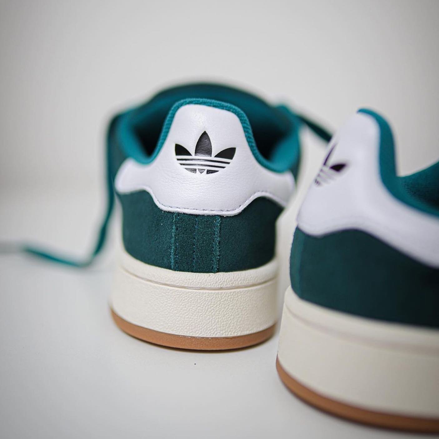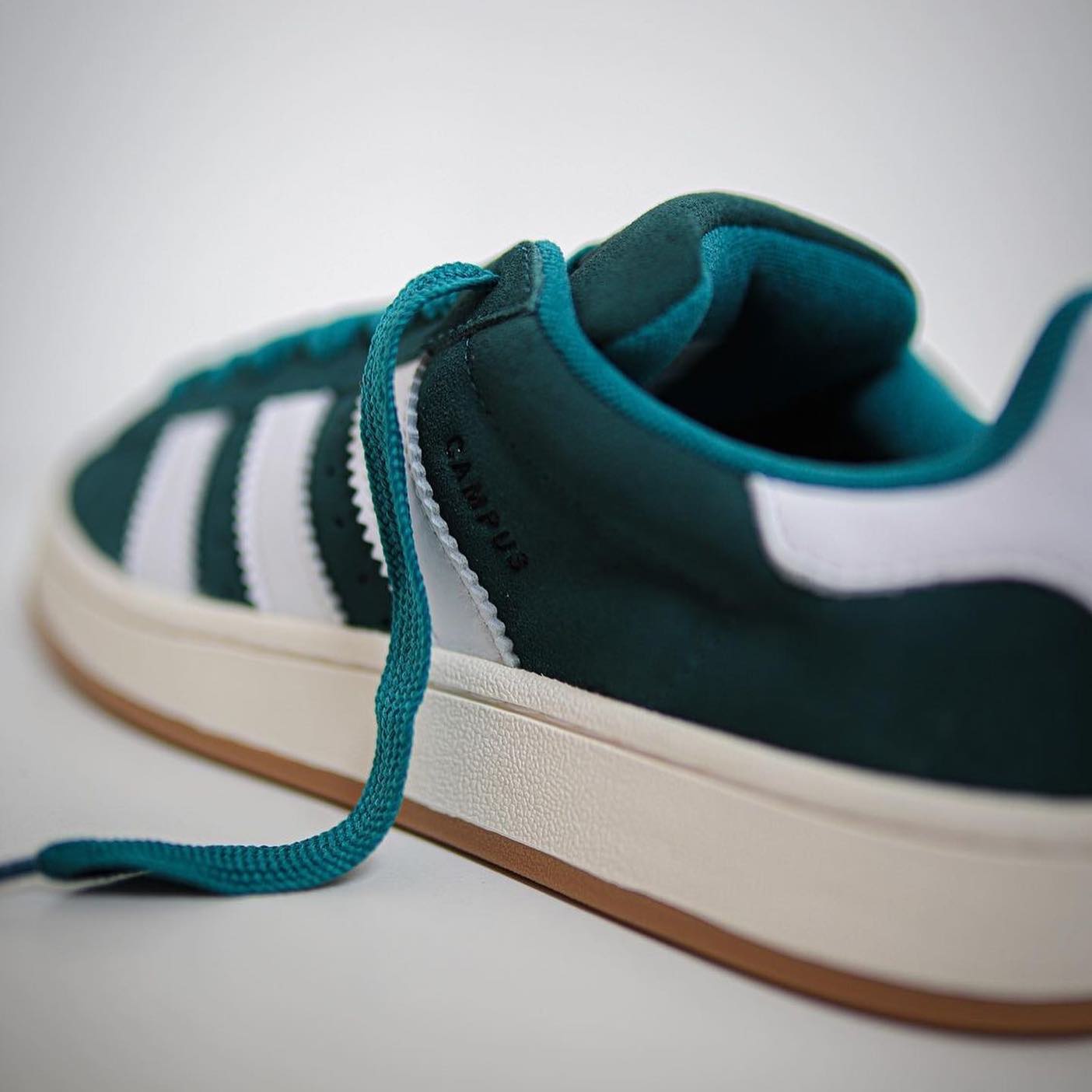 先来看第一双 CAMPUS 00S,鞋身通体以绿色麂皮打造,搭配生胶外底,营造出浓厚的复古氛围。